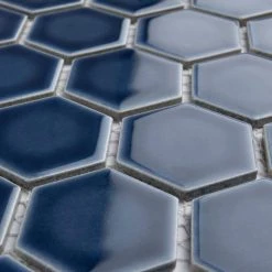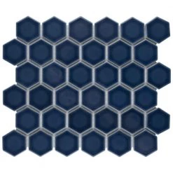 As a modern, enlarged deviation from the classic hexagon mosaic, our Hudson 2 in. Due Hex Denim Blue 11 in. x 12 in. Porcelain Floor and Wall Mosaic Tile instantly elevates spaces through a refreshing dose of geometric design. Featuring a reactive glaze with an eye-drop effect, these tiles have hues of faded denim blues that blend to white around the edges. This porcelain mosaic floor and wall tile creates a uniquely sporadic design through a pleasing mixture of cool-toned tints with additional dimension added by the smooth, high-gloss finish. Its impervious and frost-resistant features make this an ideal choice for indoor and outdoor floor and wall installations including, kitchen backsplashes, bathroom showers and accent walls. This hexagon mosaic can be used as a whole sheet or cut into smaller strips as an accent piece. It is a perfect choice on its own or coordinated with other colors in our Hudson 2 in. Due Hex series. Tile is the better choice for your space. This tile is made from natural ingredients, making it a healthy choice as it is free from allergens, VOCs, formaldehyde and PVC.