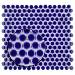 Merola Tile’s Hudson Penny Round Glossy Cobalt Blue 12 in. x 12-5/8 in. x 5 mm Porcelain Mosaic Tile lends a refreshing aesthetic to the classic penny round shape. With subtle variations in color tone that gradually fade to white around the border, each piece is truly unique. Its rich reactive glaze echoes luxurious blue hues with a high glossy finish that is unique yet simplistic enough to integrate into any design, ranging from traditional style renovations to modern home projects. Its impervious and frost-resistant features make this penny tile an ideal choice for indoor and outdoor floor and wall installations including, kitchen backsplashes, bathroom showers and accent walls. This penny round tile can be used as a whole sheet or cut into smaller strips as an accent piece. It is a perfect choice on its own or coordinated with other colors in our Hudson Penny Round series.