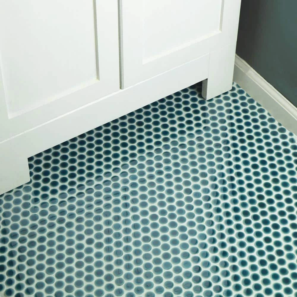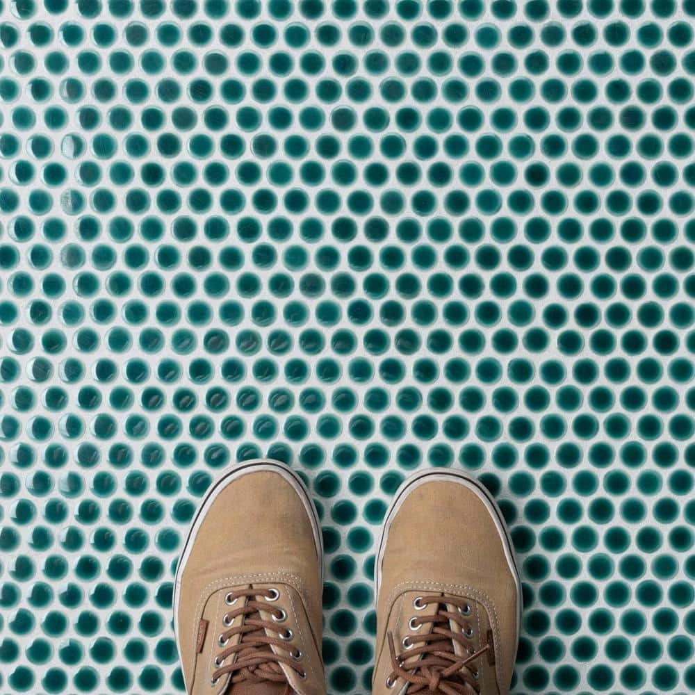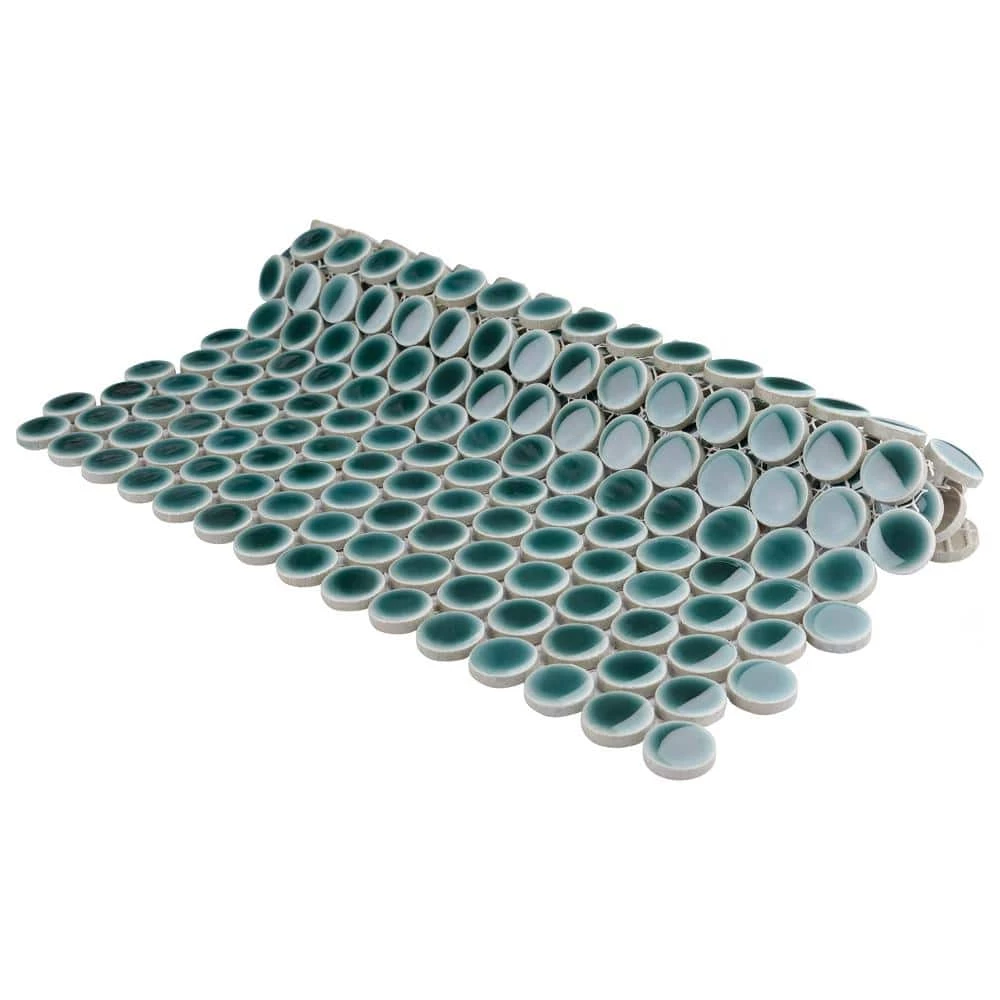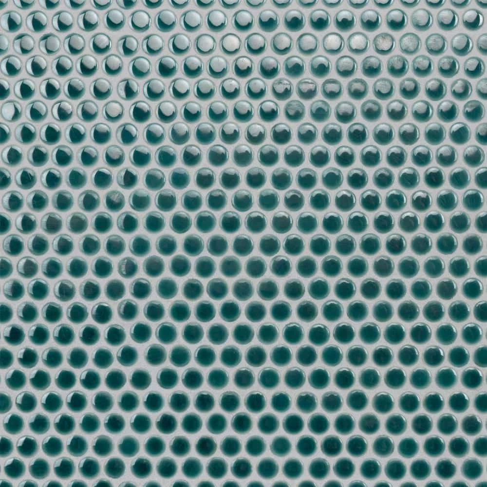 Merola Tile’s Hudson Penny Round Glossy Emerald 12 in. x 12-5/8 in. x 5 mm Porcelain Mosaic Tile lends a refreshing aesthetic to the classic penny round shape. With subtle variations in color tone that gradually fade to white around the border, each piece is truly unique. Its rich reactive glaze echoes deep emerald hues with a high glossy finish that is unique yet simplistic enough to integrate into any design, ranging from traditional style renovations to modern home projects. Its impervious and frost-resistant features make this penny tile an ideal choice for indoor and outdoor floor and wall installations including, kitchen backsplashes, bathroom showers and accent walls. This penny round tile can be used as a whole sheet or cut into smaller strips as an accent piece. It is a perfect choice on its own or coordinated with other colors in our Hudson Penny Round series.
