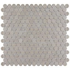 Our Hudson Penny Round Glossy Black 12 in. x 12-5/8 in. x 5 mm Porcelain Mosaic Tile lends a refreshing aesthetic to the classic penny round shape. This tile features a uniformly glazed surface with a smooth texture and a glossy black color tone. It offers a versatile appearance that is unique yet simplistic enough to integrate into any design, ranging from traditional style renovations to modern home projects. Its impervious and frost-resistant features make this penny tile an ideal choice for indoor and outdoor floor and wall installations including, kitchen backsplashes, bathroom showers and accent walls. This penny round tile can be used as a whole sheet or cut into smaller strips as an accent piece. It is a perfect choice on its own or coordinated with other colors in our Hudson Penny Round series.