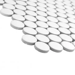 Our Hudson Penny Round Matte White 12 in. x 12-5/8 in. x 5 mm Porcelain Mosaic Tile is a reinvented version of Victorian-era beauty. As a modern deviation from the classic mosaic, this fresh option is a throwback to traditional retro design with a contemporary feel. Smooth matte white penny rounds are precisely arranged on an interlocking mesh to create a seamless installation. This minimalistic geometric porcelain mosaic is unique yet simplistic enough to integrate into any design, ranging from traditional style renovations to modern home projects. Its impervious, ADA-compliant and frost-resistant features make this penny tile an ideal choice for indoor and outdoor floor and wall installations including, kitchen backsplashes, bathroom showers and accent walls. This penny round tile can be used as a whole sheet or cut into smaller strips as an accent piece. It is a perfect choice on its own or coordinated with other colors in our Hudson Penny Round series.