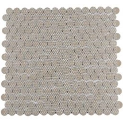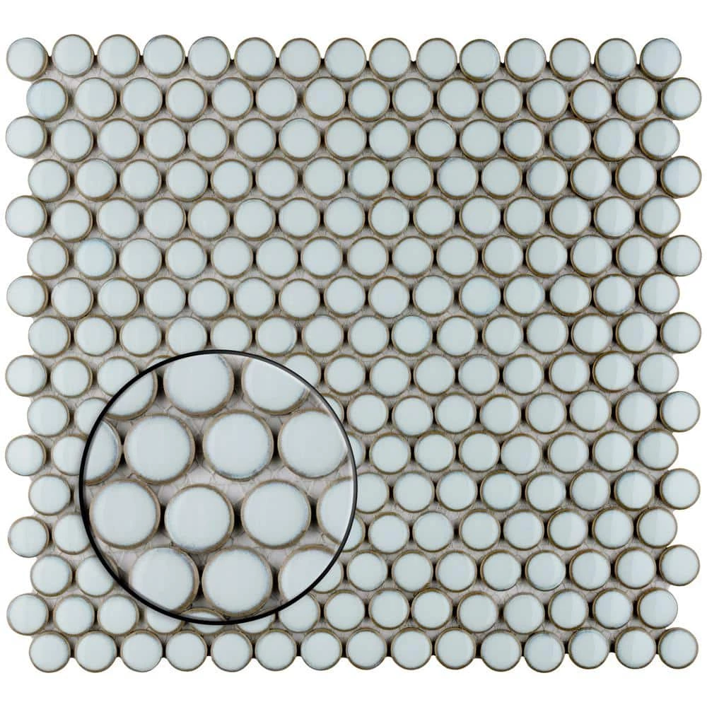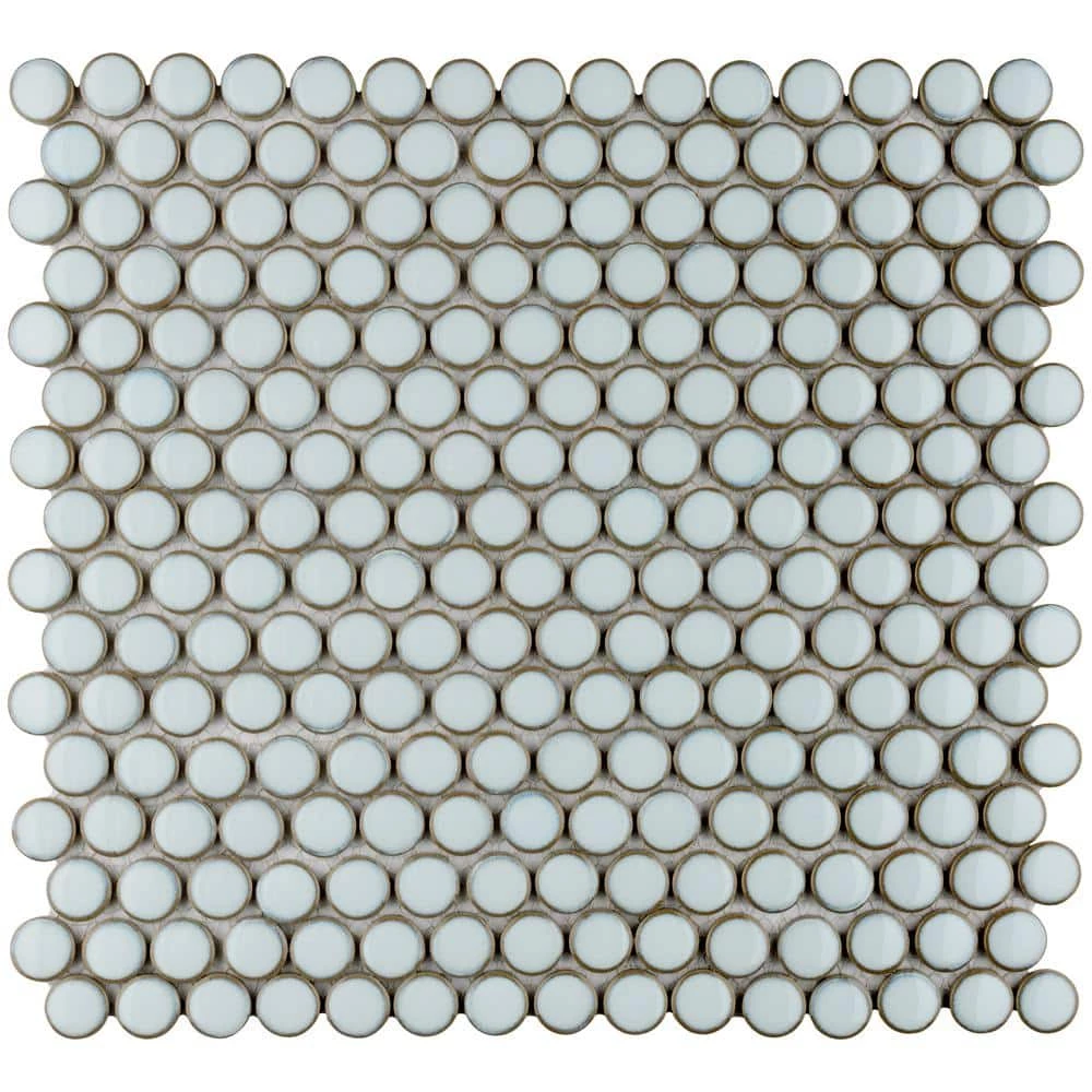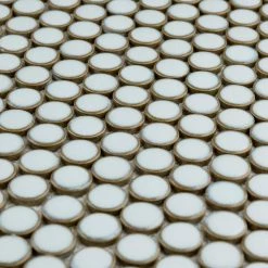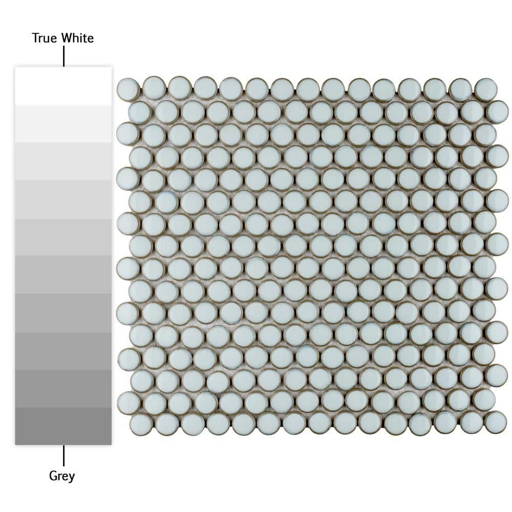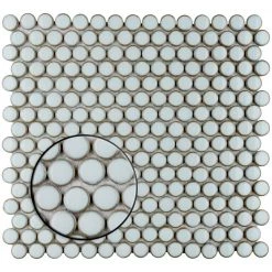 Merola Tile’s Hudson Penny Round Silk White 12 in. x 12 in. Porcelain Mosaic Tile is a beautifully tranquil update on the timeless penny round design. Featuring a reactive glaze with an eye-drop effect, these tiles have soft, silk white color tone that blend to taupe around the edges. This mosaic is a pleasing mixture of cool-toned tints with additional dimension added by the smooth, high-gloss finish. Its impervious and frost-resistant features make this penny tile an ideal choice for indoor and outdoor floor and wall installations including, kitchen backsplashes, bathroom showers and accent walls. This penny round tile can be used as a whole sheet or cut into smaller strips as an accent piece. It is a perfect choice on its own or coordinated with other colors in our Hudson Penny Round series.