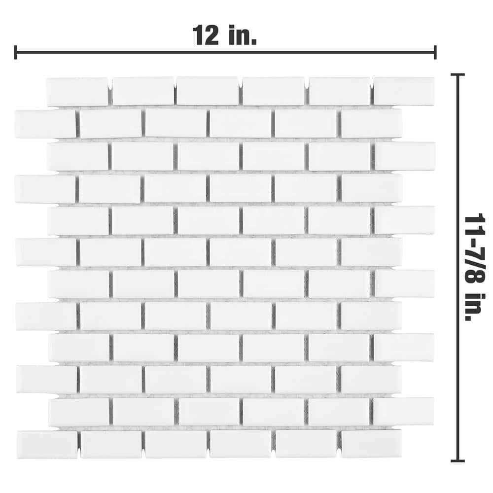 - 11.88 in. width x 12 in. length x 0.23 in. mm thick mesh-mounted mosaic. 0.88 in. W x 1.88 in. L pieces