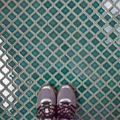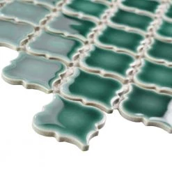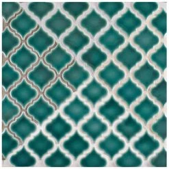 The Merola Tile Hudson Tangier Emerald 12 in. x 12 in. Porcelain Mosaic Tile features our popular lantern design with a modern update. Each piece is truly unique, with subtle variations in the blue-green color and the width of the milky border. Its rich reactive glaze echoes the hue in the deep Pacific Ocean, setting up a calming effect for your bath, shower, light-duty floor or backsplash. Impervious, frost-resistant and easy to clean, this tile is a perfect choice on its own or coordinated with other colors in our Hudson series.