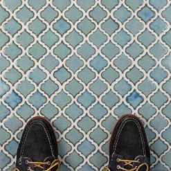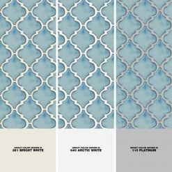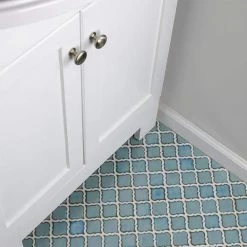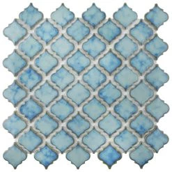 The Merola Tile Hudson Tangier Marine 12 in. x 12 in. Porcelain Mosaic Tile offers a beautifully tranquil update on the timeless lantern design. This tile features a reactive glaze that creates variable blue tones in the center mixed with creamy shades on the edge. Centered surf blue tones and varying amounts of deeper blue tones mimic the appearance of the varying depths of water in a natural pool with additional dimension added by the high-gloss finish. Impervious, frost-resistant and easy to clean, this tile is a perfect choice on its own or coordinated with other colors in our Hudson Tangier series.
