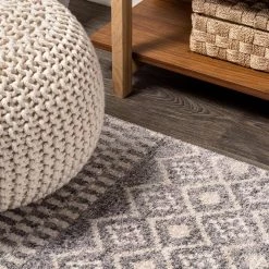 Inspired by vintage Moroccan tribal rugs, our modern version is ideal for a living room, bedroom or entry. Berber-inspired geometric designs are woven in ivory on a field of gray; the mingled threads recall traditional handwoven rugs. Add some Bohemian style to your home with this easy-care rug.