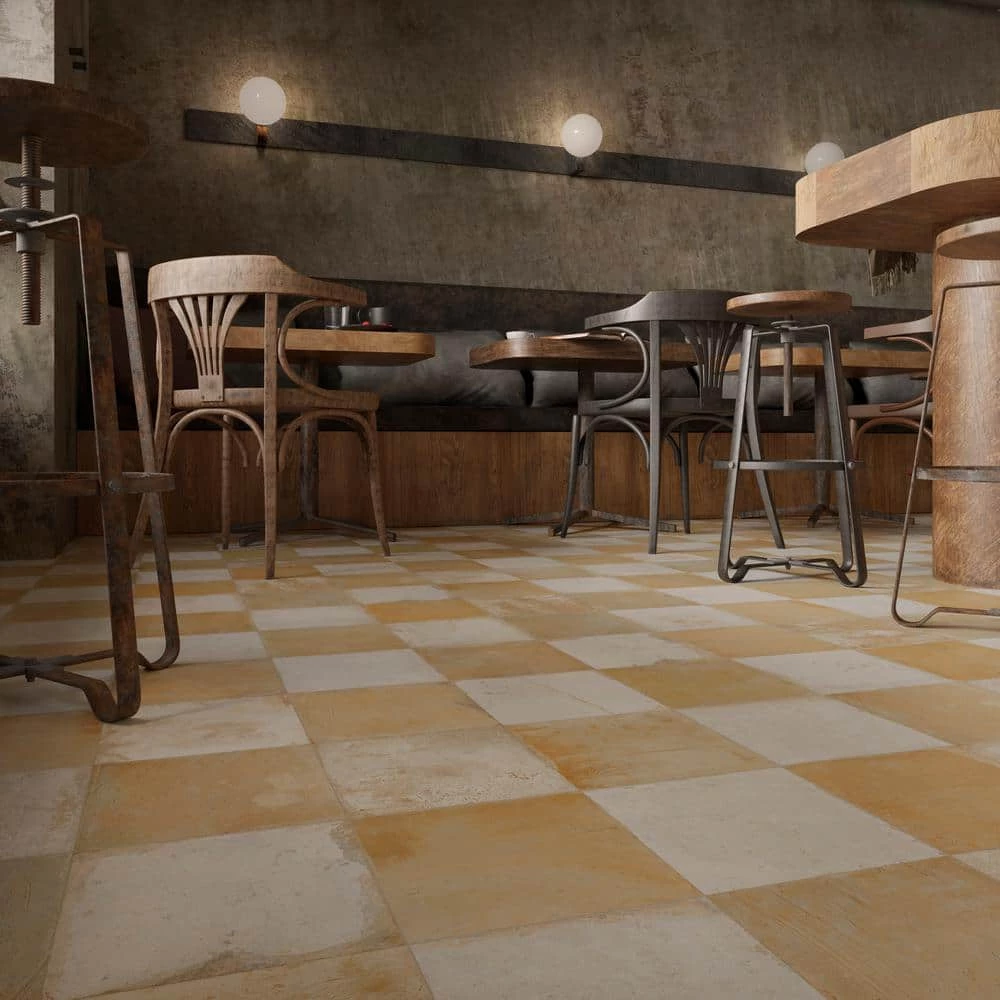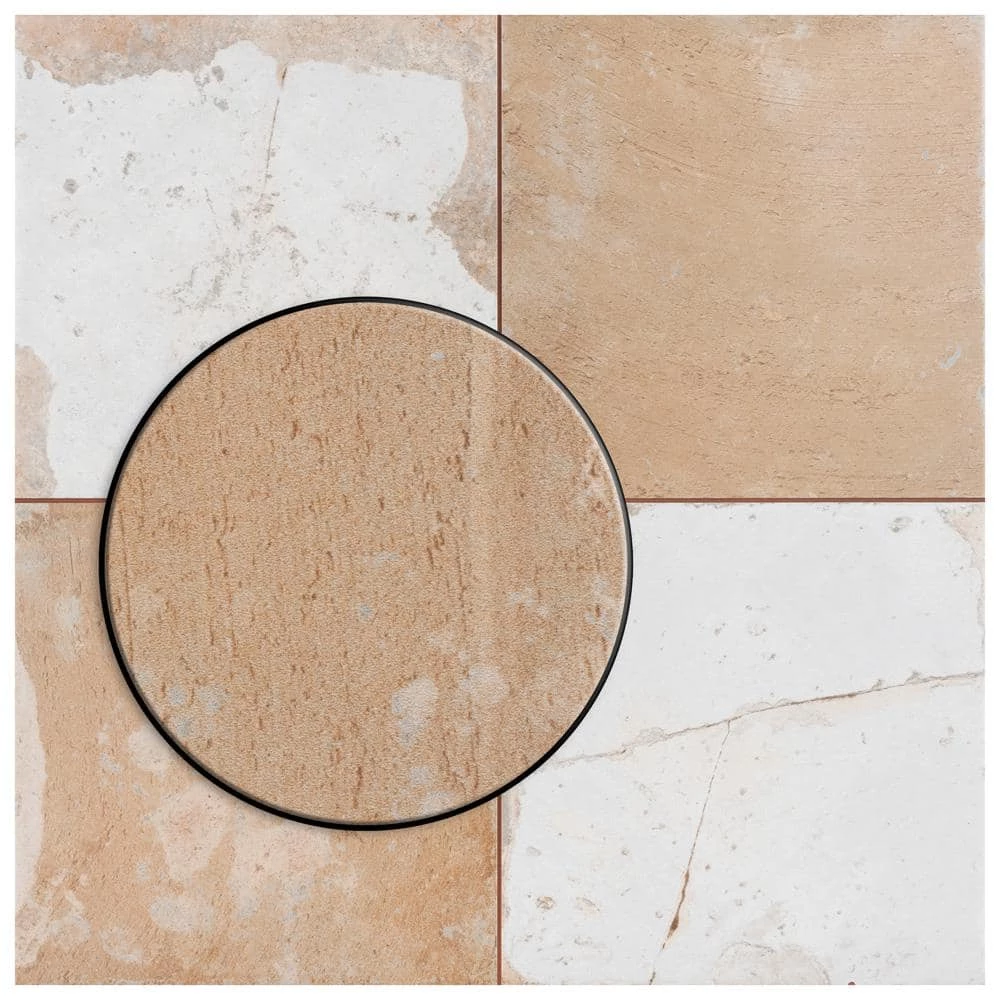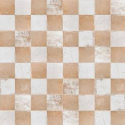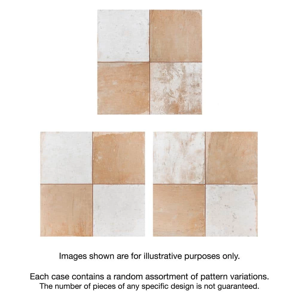 Imported from Spain, our Kings Clay Checker Sand 17-3/4 in. x 17-3/4 in. Ceramic Floor and Wall Tile emulates vintage cement tiles. This hydraulic style floor and wall tile features a unique, low-sheen glaze in alternating natural, earth toned shades. Inspired by Vietnamese ceramics and the wabi-sabi philosophy, interior architect and furniture designer, Francisco Segarra, designed this collection to explore the possibilities of clay as a creative and decorative element. Using earth tones, natural textures and a more relaxed vintage aesthetic, this collection generates warm and comfortable interiors, which further reflect the essence of wabi-sabi. Available in 10 print variations that are randomly distributed throughout each case, the variation throughout each tile mimics an authentic aged appearance. Save time and labor spent arranging smaller square tiles and instead install these durable ceramic slabs, which have squares separated by scored grout lines. Its durable and glazed features make this tile an ideal choice for indoor installations including kitchens, bathrooms, backsplashes, showers and entryways. Tile is the better choice for your space. This tile is made from natural ingredients, making it a healthy choice as it is free from allergens, VOCs, formaldehyde and PVC.