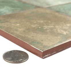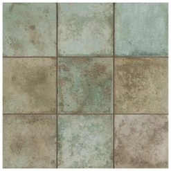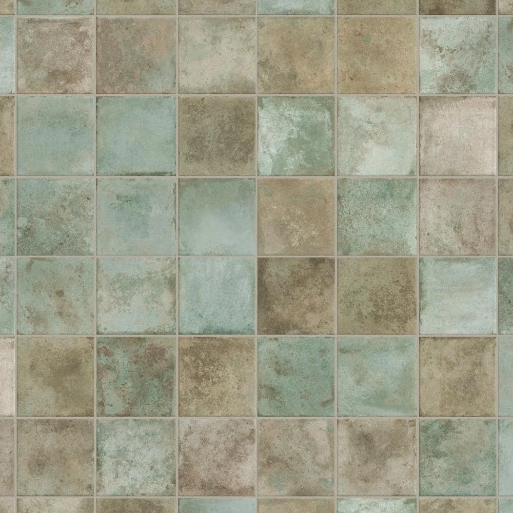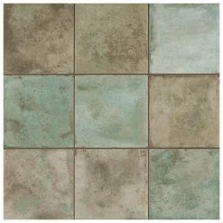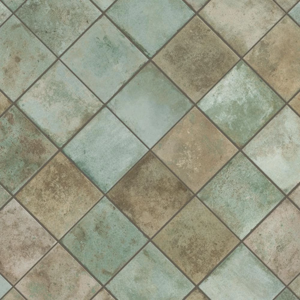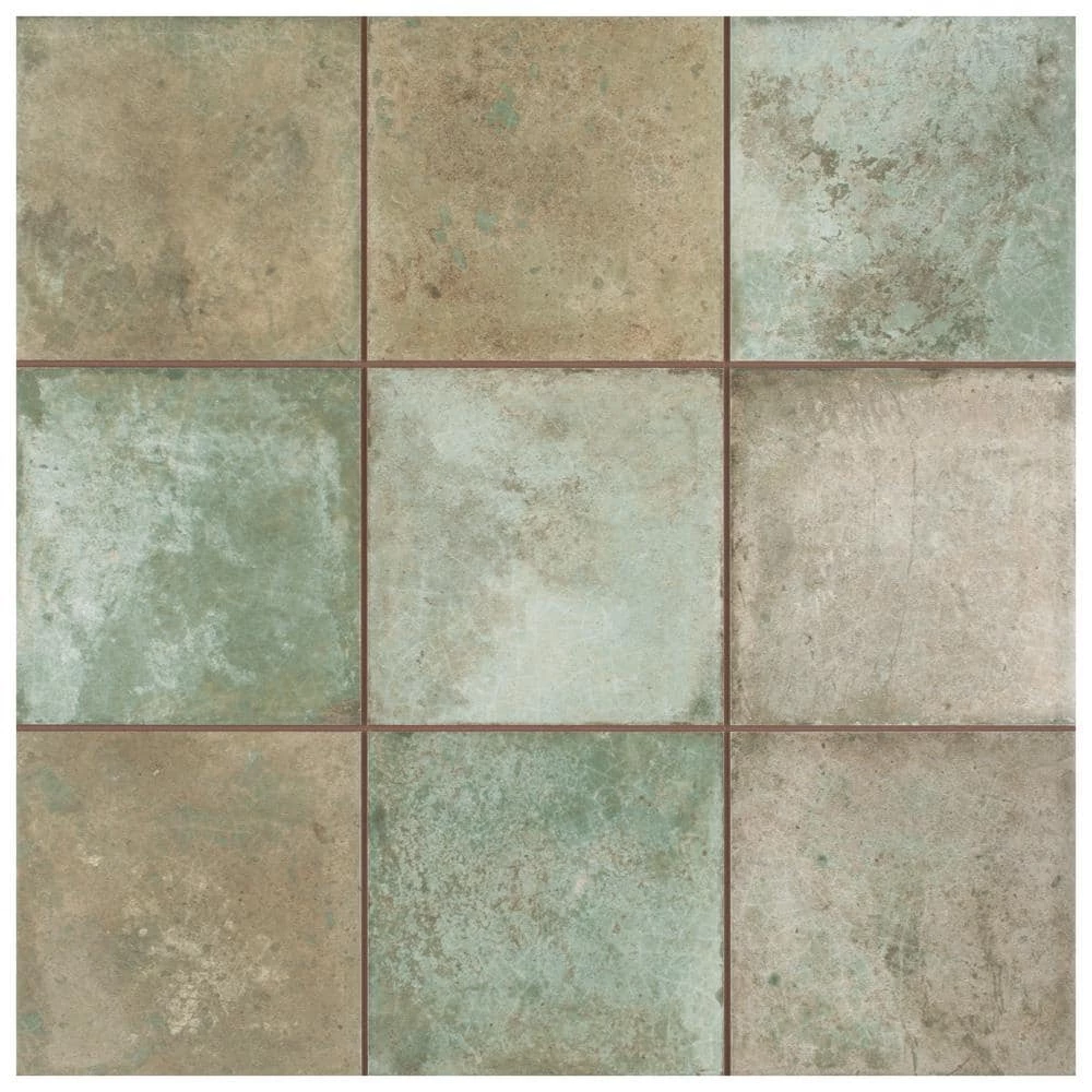 Imported from Spain, our Merola Tile Kings Etna Encaustic 13-1/8 in. x 13-1/8 in. Sage Ceramic Floor and Wall Tile radiates old-world European elegance. This encaustic-inspired tile features a unique, low-sheen glaze and an undulated surface in faded sage green tones. Designed by interior architect and furniture designer Francisco Segarra, this tile is a true reflection of vintage industrial design. Realistic imitations of scuffs and spots that are the marks of well-loved, worn, century-old tile bring rustic charm to any interior setting. These rustic scuffs and spots convince that this tile is truly aged. Available in 11 print variations that are randomly scattered throughout each case, the variation throughout each tile mimics an authentic aged appearance. Save time and labor spent arranging smaller square tiles and instead install these durable porcelain slabs, which have squares separated by scored grout lines. The scored grout lines can be grouted with the color of your choice, or left ungrouted for a rugged finish. It’s durable, ADA-compliant and glazed features make this tile an ideal choice for indoor commercial and residential use, including kitchens, bathrooms, entryways and patios. Tile is the better choice for your space. This tile is made from natural ingredients, making it a healthy choice as it is free from allergens, VOCs, formaldehyde and PVC.