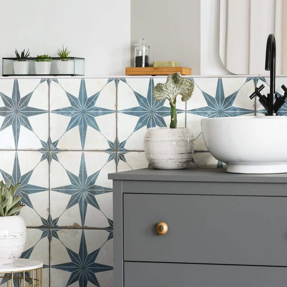 Give your home a fresh update with this Merola Tile Kings Star Blue floor and wall tile. Ideal for a kitchen backsplash, shower or accent wall, it’s made for indoor, commercial or residential use. This beige and blue square ceramic tile create visual appeal to any space.