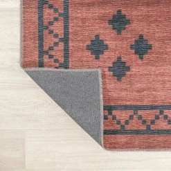 - Terracotta and charcoal color scheme is a modern take on geometric rugs