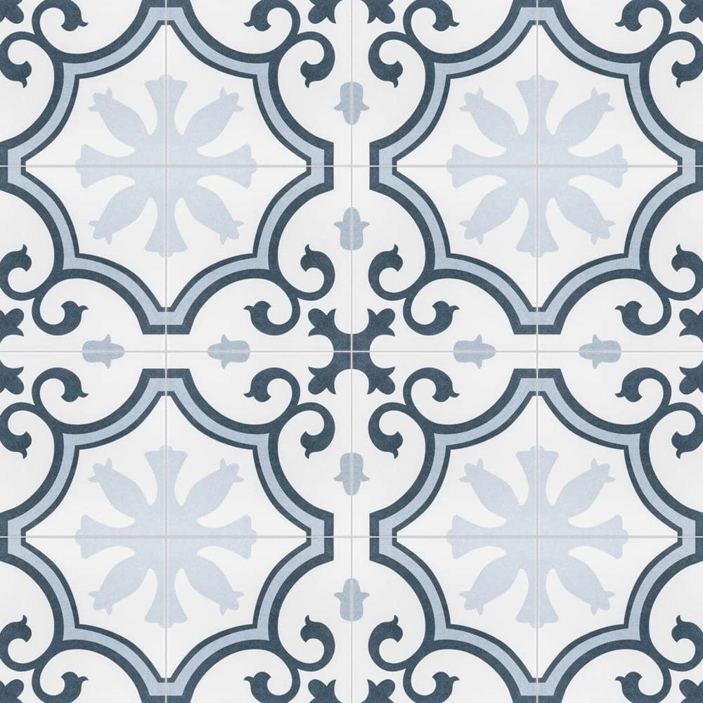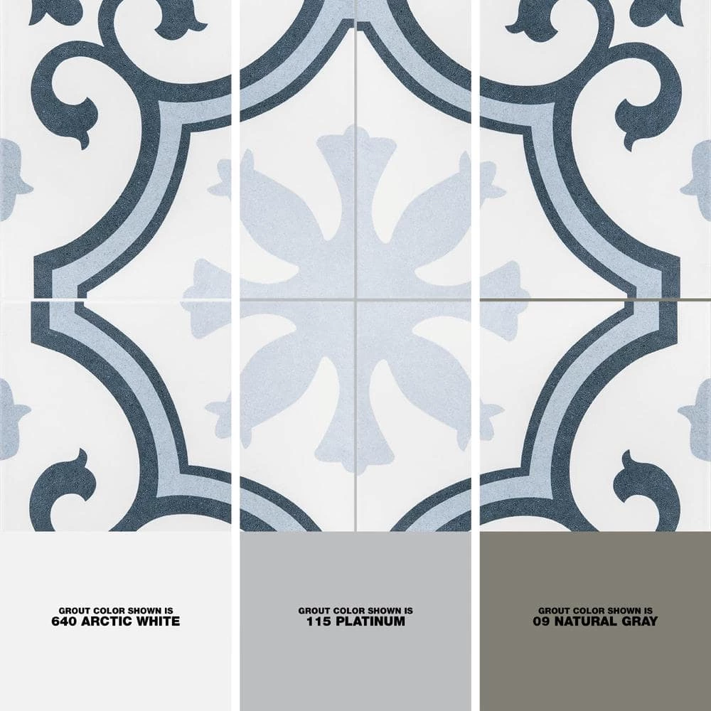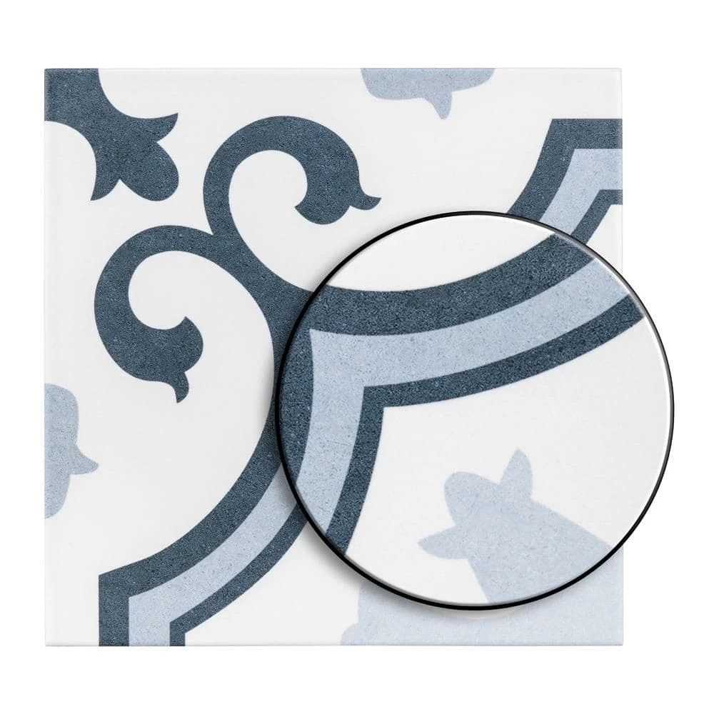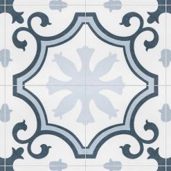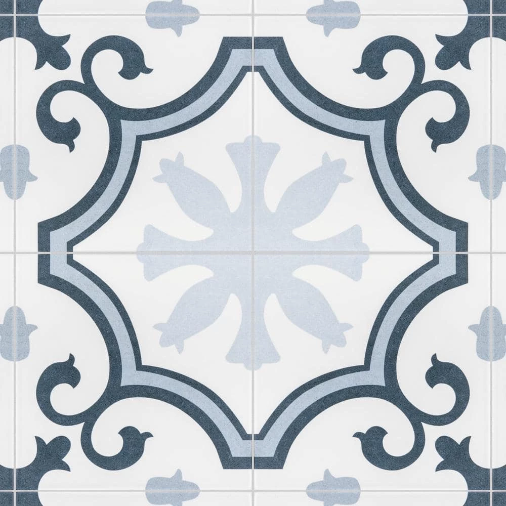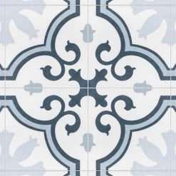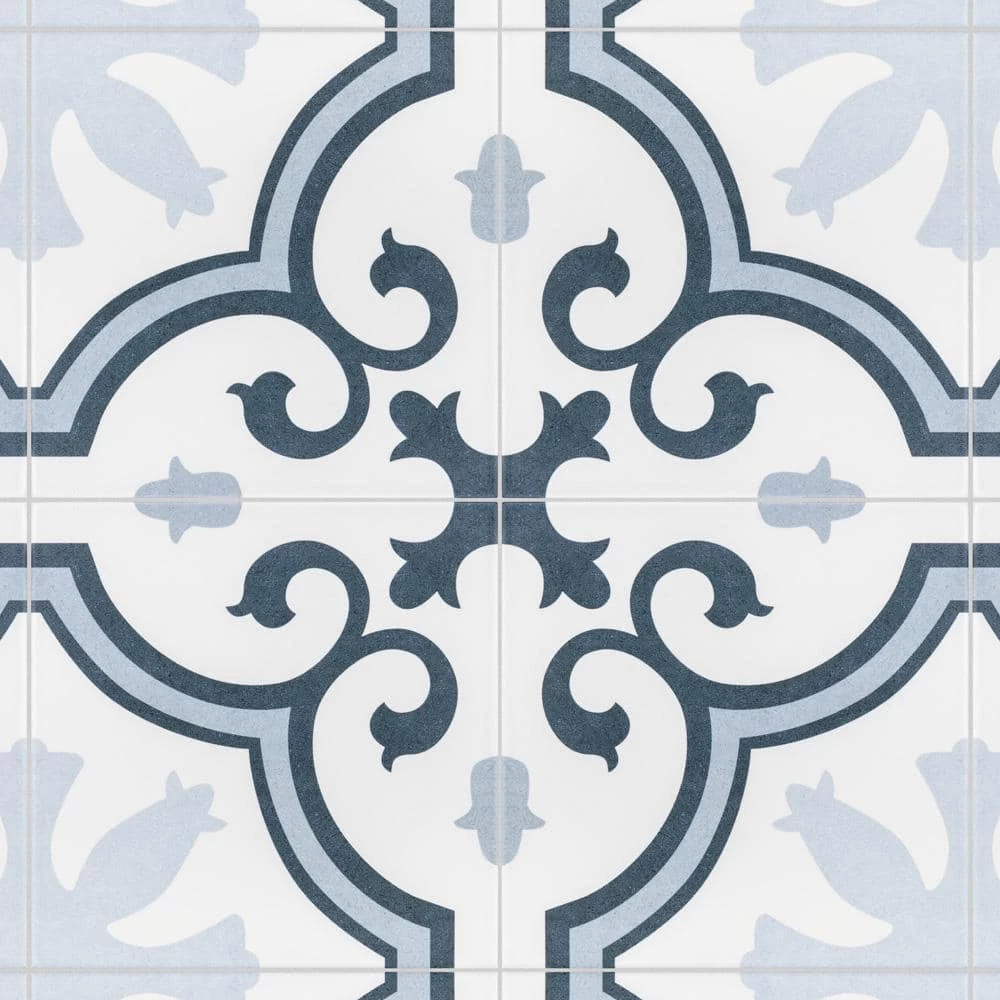Drawing inspiration from artisan cement tiles, the Merola Tile Lacour Arctic Encaustic 9-3/4 in. x 9-3/4 in. Porcelain Floor and Wall Tile is a gorgeous tribute to encaustic design. With a recognizable European-inspired design in white and calming blues, the simplistic arcs frame the snowflake inspired patterns that create continuity throughout the installation. Set on a white base glaze, the contrasting design features a weathered, speckled look, replicating the beauty of its cement muse. The floral, geometric pattern blends into virtually any design theme, making this an exceptional product for modern installations and historic renovations. Offering a high durability Rating and dense porcelain body, this tile is an excellent choice for most interior and exterior installations, including showers, kitchens and backsplashes. Tile is the better choice for your space. This tile is made from natural ingredients, making it a healthy choice as it is free from allergens, VOCs, formaldehyde and PVC.