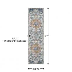 This vibrant medallion rug’s traditional pattern adds Bohemian style to a living room, bedroom, entry or kitchen. Navy, orange and gray vines and flowers on an ivory background give this rug a hand-woven, vintage vibe. The busy allover pattern is pet-friendly and great for kids too.