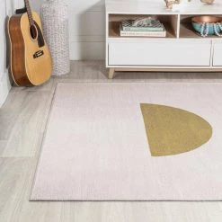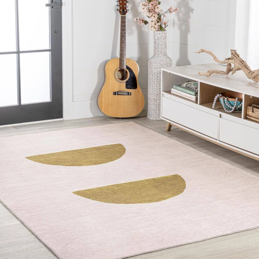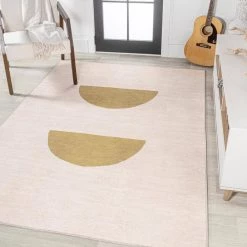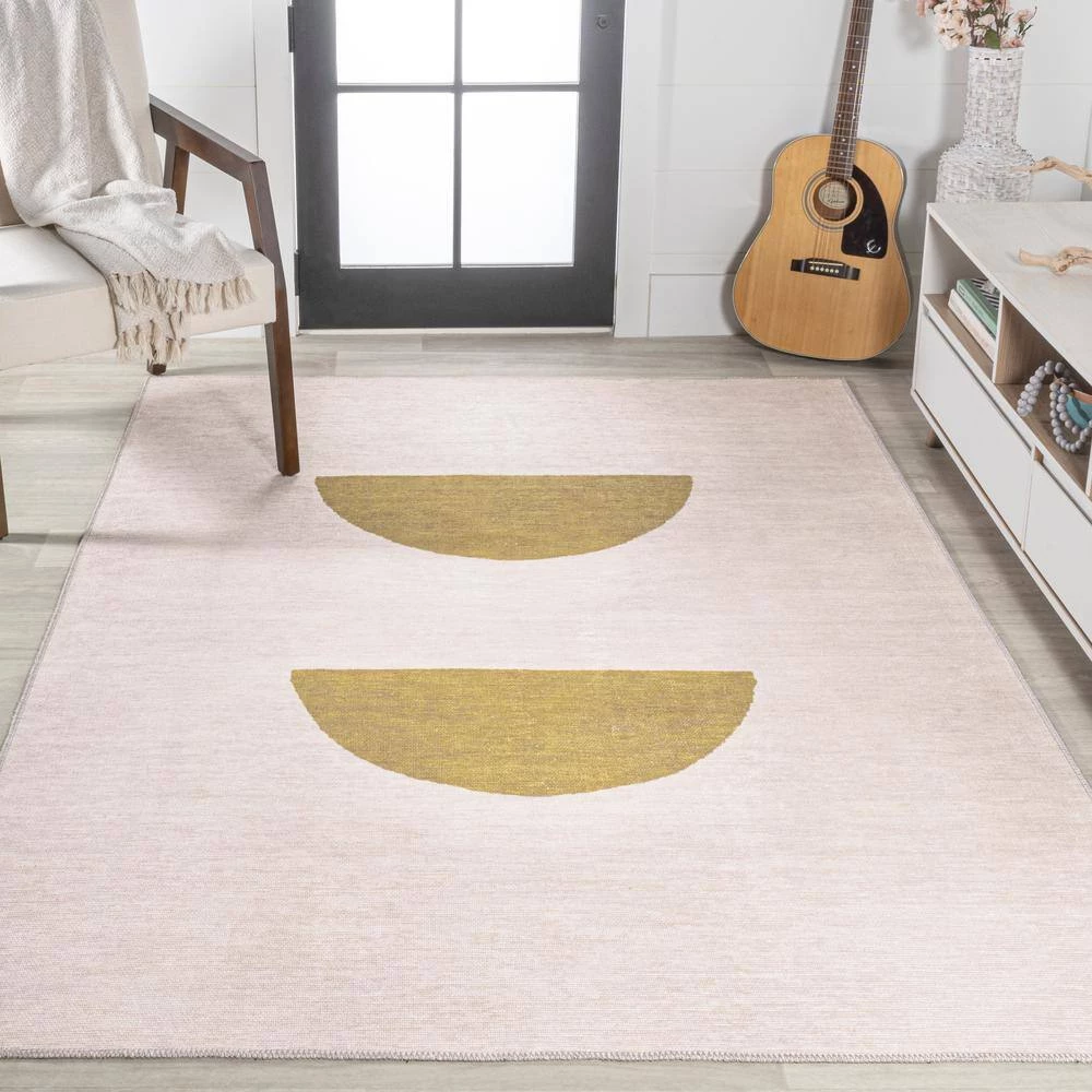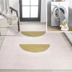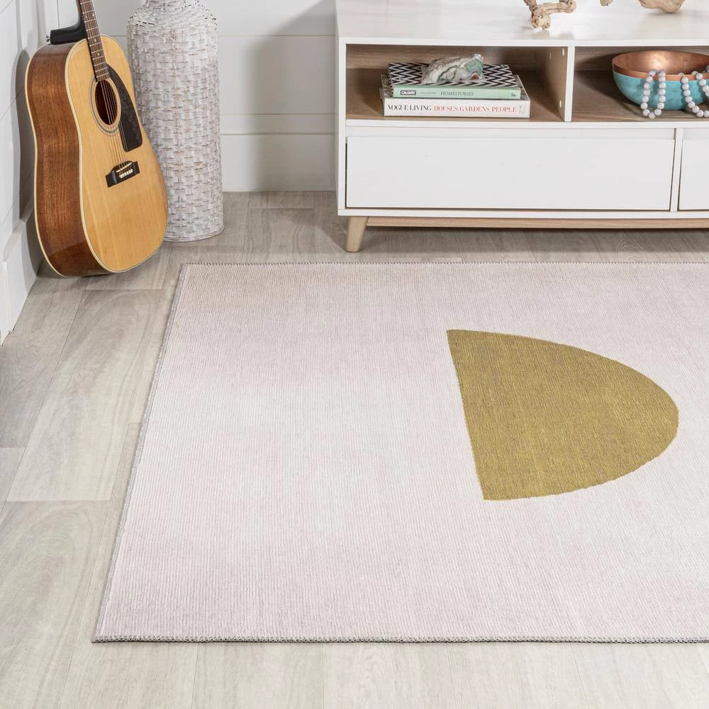Inspired by Scandinavian simplicity, our machine washable geometric rug has chic minimalist style. The half-circle pattern is woven in a modern, 2-tone color palette. Add graphic punch to your living room, dining room, entry, or bedroom with this easy-care rug.