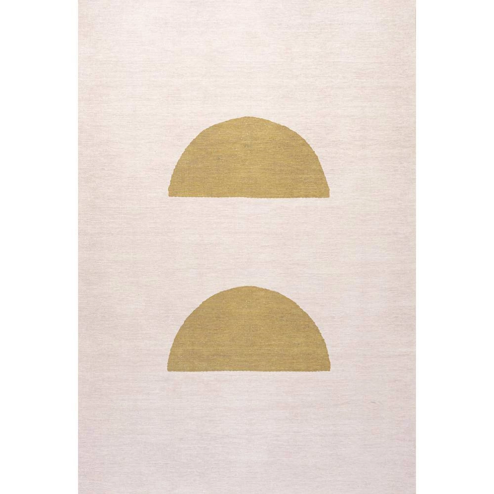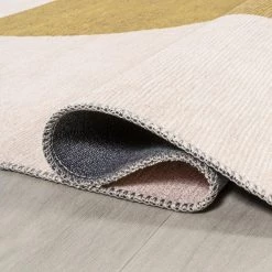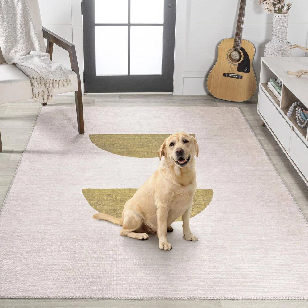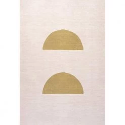 - Gold-beige and ivory color scheme is a modern take on neutral geometric rugs