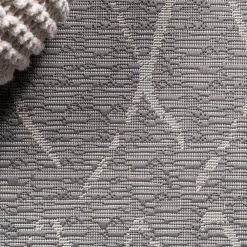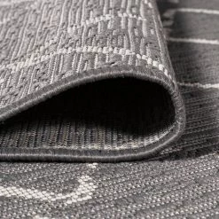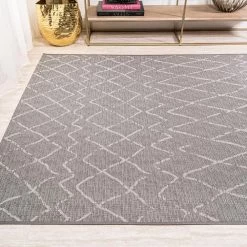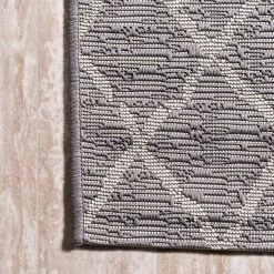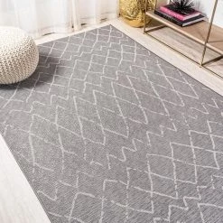 Inspired by vintage Moroccan rugs, our indoor/outdoor rug adds modern Bohemian style to your porch, patio or sunroom. The classic Moroccan pattern has a geometric design of beige diamonds on a field of dark gray. Mingled threads give this rug a handwoven, vintage vibe that’s perfect for an entry, kitchen, hallway, living room or bedroom too. The pet-friendly and kid-proof flatweave design makes it easy to clean, and perfect for the beach house.