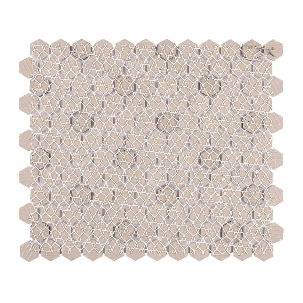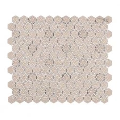 - 10.25 in. width x 11.88 in. length x 6mm thick mesh-mounted mosaic; 0.91 in. W x 0.91 in. L hexagon pieces