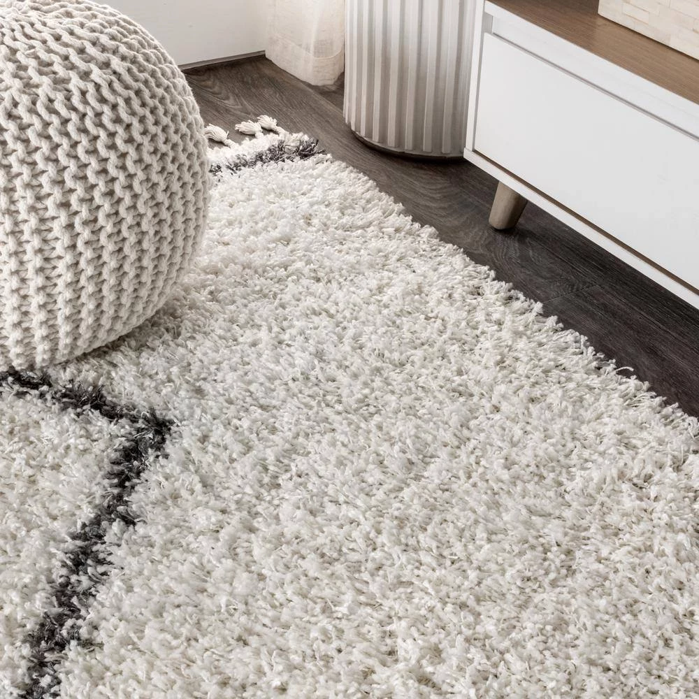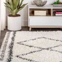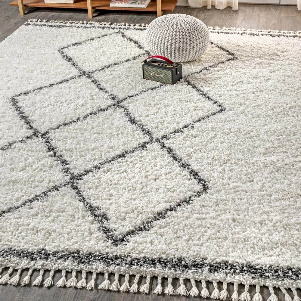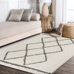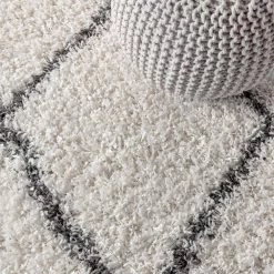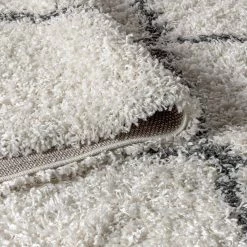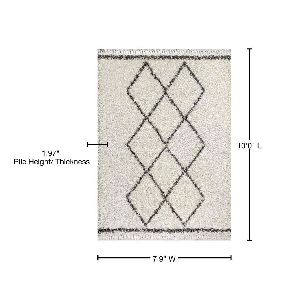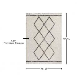 A clean, linear update to the classic Moroccan diamond trellis design is simultaneously simple and stunning in this plush 2 in. pile rug. Power loomed, it has durability that will withstand light traffic and an occasional cleaning while retaining style inspired straight from the souk. Made from polypropylene, this synthetic fiber is not only super soft, but solution dyed for lasting color.