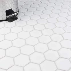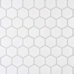 Transform your space into a tribute to retro design with our Metro Hex 2″ Matte White 11-1/8 in. x 12-5/8 in. Porcelain Mosaic Floor and Wall Tile. As a modern, enlarged deviation from the classic hexagon mosaic, this tile option is a throwback to traditional retro design with a contemporary feel. Matte white hexagons are precisely arranged on an interlocking mesh to create a seamless installation. This minimalistic geometric porcelain mosaic is unique yet simplistic enough to integrate into any design, ranging from traditional style renovations to modern home projects. Its impervious and frost-resistant features make this an ideal tile for both indoor and outdoor commercial and residential use, including backsplashes, bathrooms, kitchens and patios. This tile is a perfect choice on its own or paired with other products in the Metro Hex Collection. Tile is the better choice for your space. This tile is made from natural ingredients, making it a healthy choice as it is free from allergens, VOCs, formaldehyde and PVC.