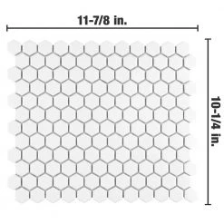 - 10.25 in. width x 11.88 in. length x 0.22 in. mm thick mesh-mounted mosaic. 0.9 in. W x 0.9 in. L pieces