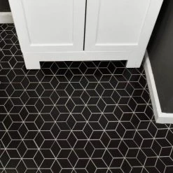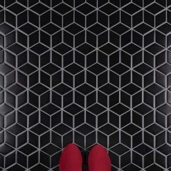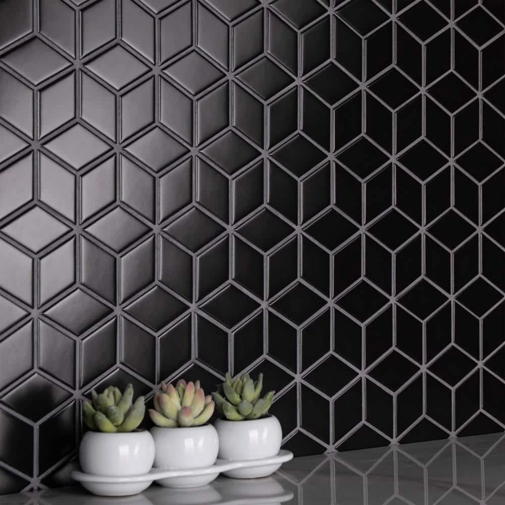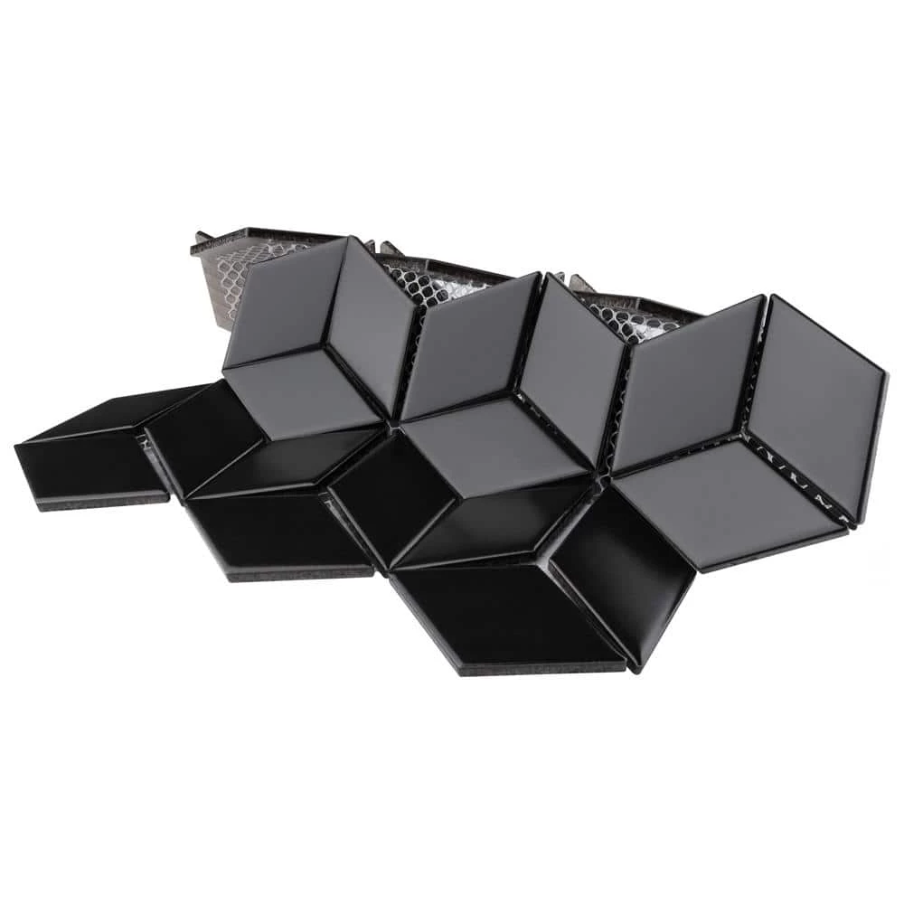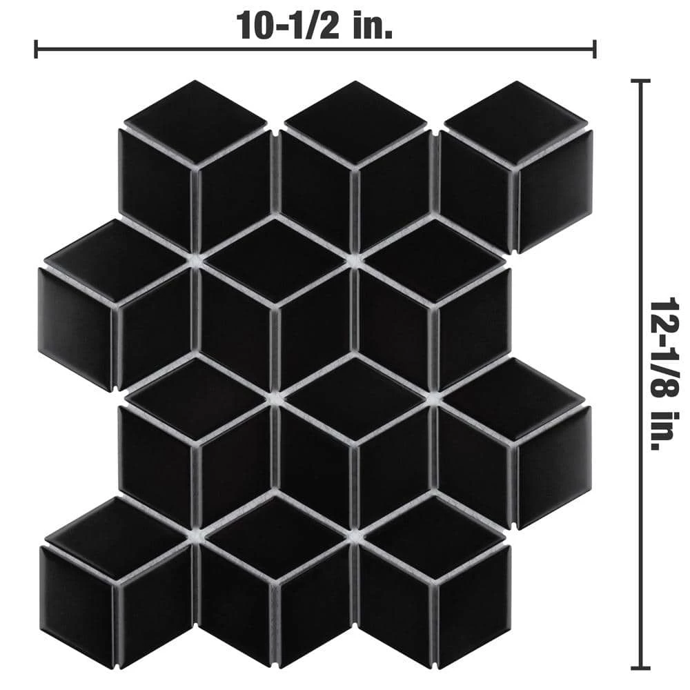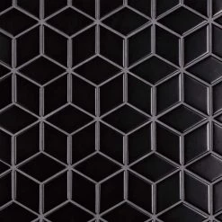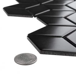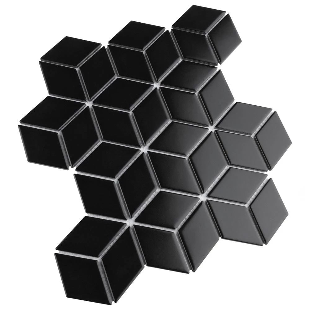 Our Metro Rhombus Matte Black 10-1/2 in. x 12-1/8 in. Porcelain Mosaic Floor and Wall Tile instantly elevates spaces through a refreshing dose of geometric design. As an innovative twist on the classic mosaic, this product is comprised of diamond shaped chips in black with a smooth surface. Matte diamonds are arranged on an interlocking mesh to create a seamless installation. This minimalistic geometric porcelain mosaic is unique yet simplistic enough to integrate into any design, ranging from traditional style renovations to modern home projects. Its impervious and frost-resistant features make this an ideal tile for both indoor and outdoor residential use, including backsplashes, bathrooms, showers and kitchens. This tile is a perfect choice on its own or paired with other products in the Metro Rhombus Collection. Tile is the better choice for your space. This tile is made from natural ingredients, making it a healthy choice as it is free from allergens, VOCs, formaldehyde and PVC.