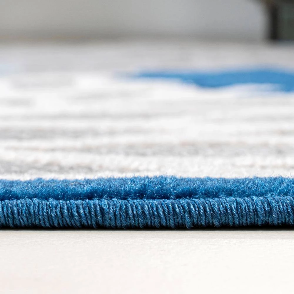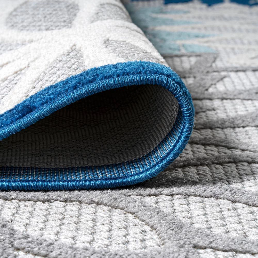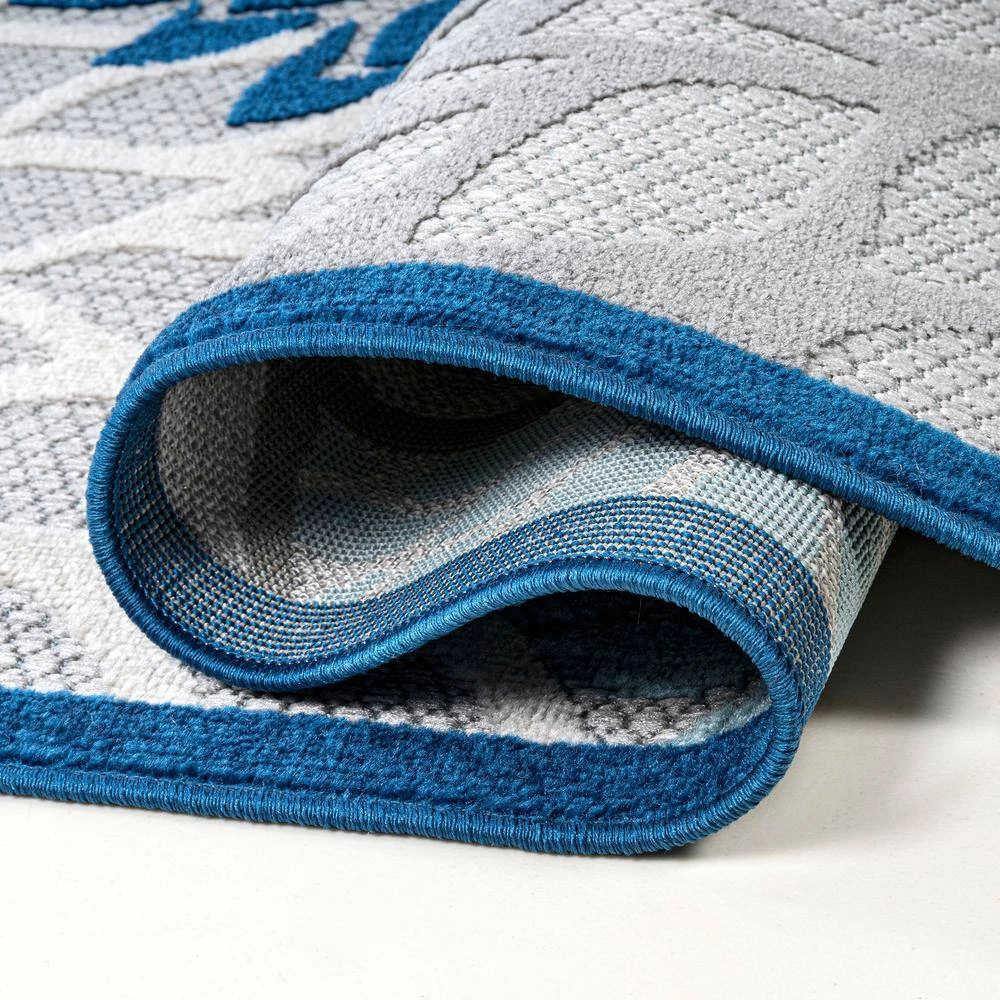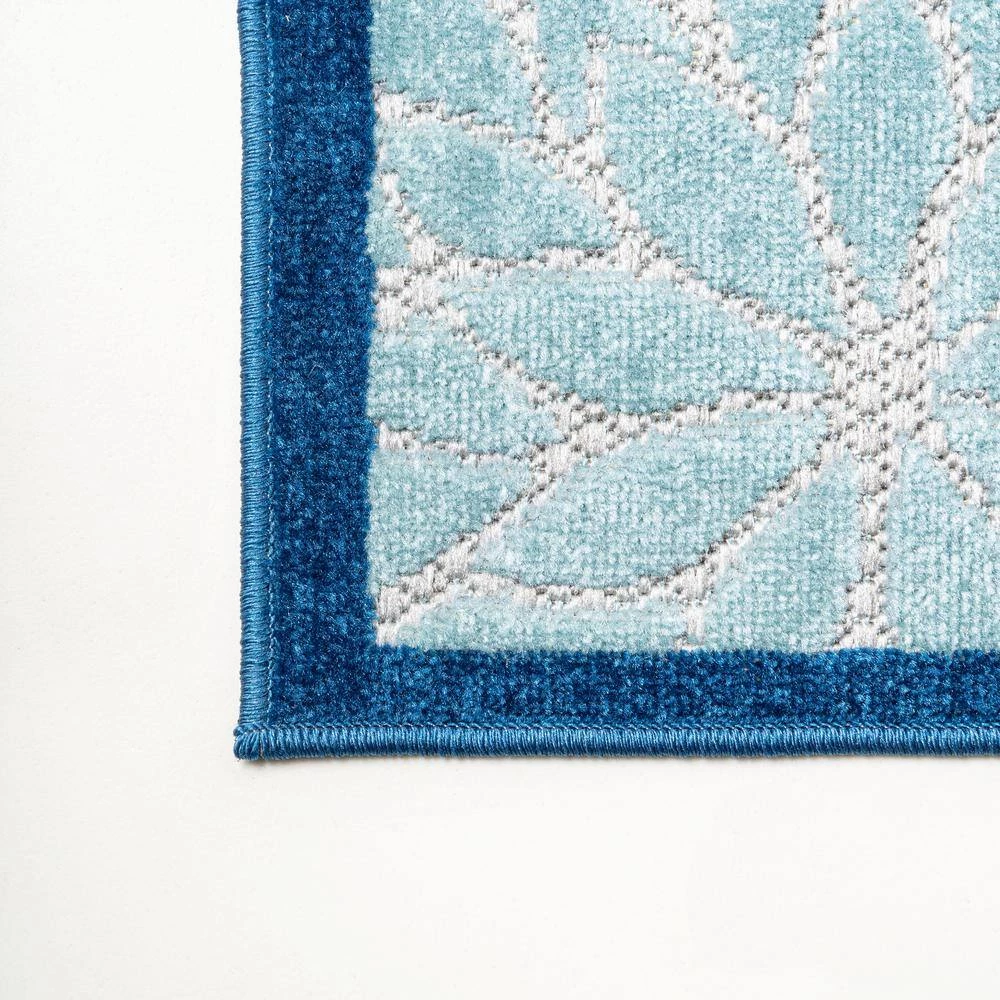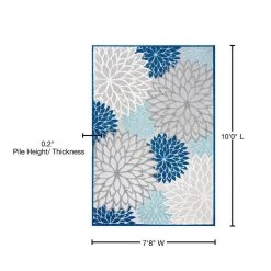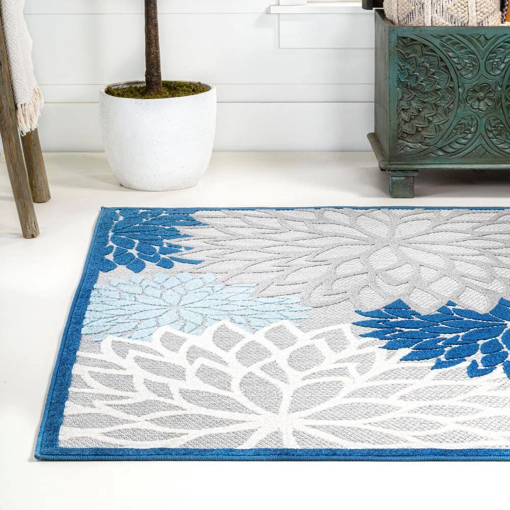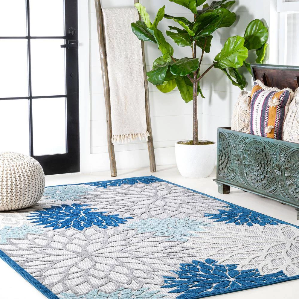 With its splashy, modern floral pattern in blue and aqua, this indoor-outdoor rug has a fresh look that’s ideal for a family room, dining room, bedroom, or kids’ rooms. Soft, durable synthetic fibers are an easy maintenance solution for homes with kids and pets. Choose from several colorways and add a splash of style to your porch or patio.