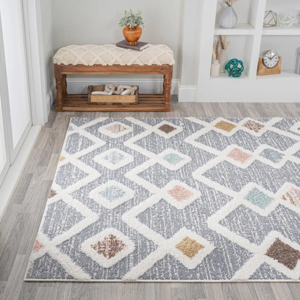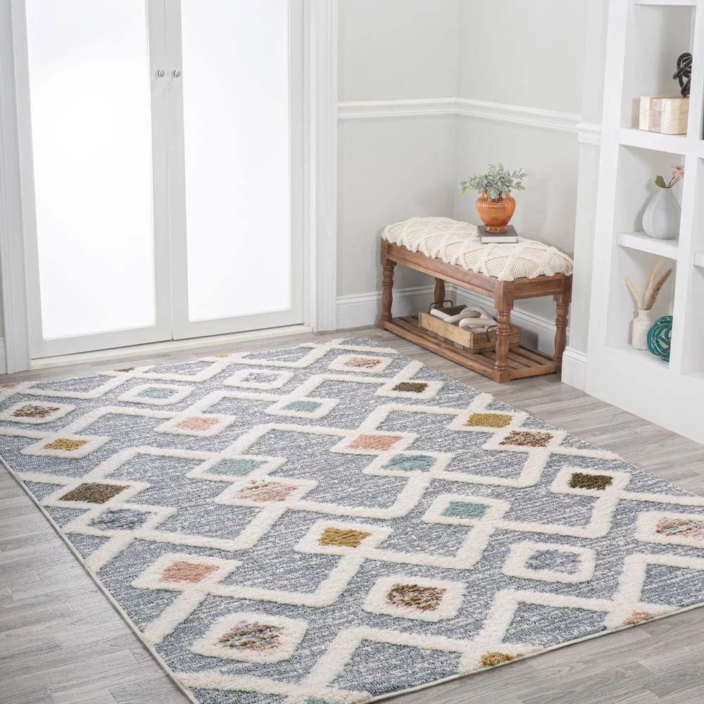 Our updated take on a classic tribal rug pattern features modern, Boho-inspired pastel shades in a geometric trellis design. This versatile rug features two different pile heights for soft texture in the living room, bedroom or home office. Woven from easy-care yarns, this is a family-friendly rug designed to add bold pattern and soft color to mid-century, transitional and modern interiors.