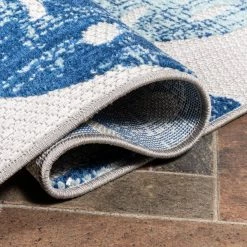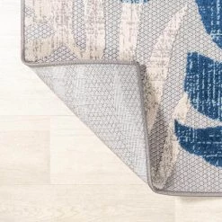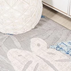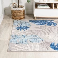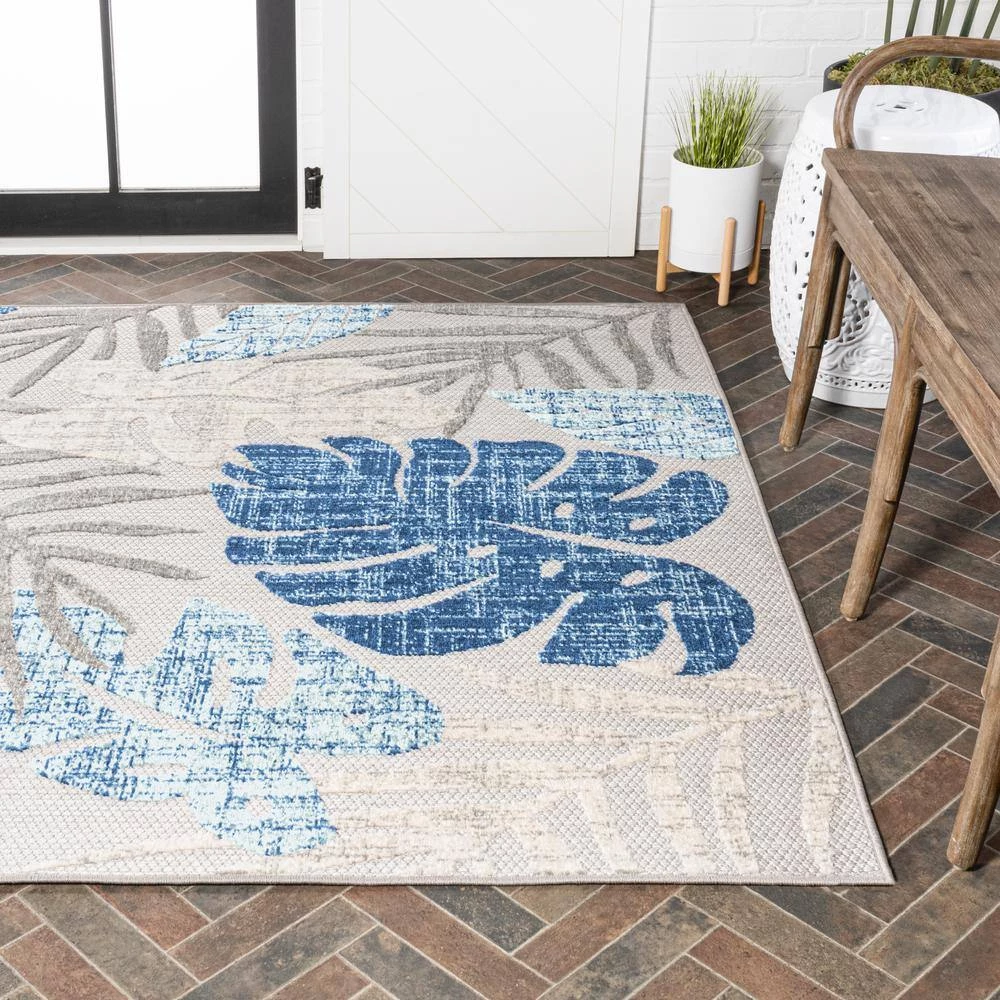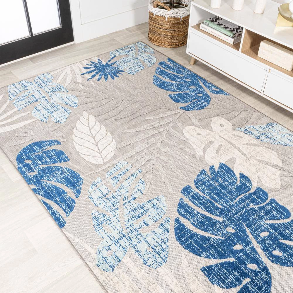 Whether you live in a beach retreat or just love jungalow style, the tropical leaf pattern of this rug brings the jungle home. Monstera leaves and palm fronds create an abstract pattern with a textured weave. The pet-friendly and kid-proof low-pile design makes it easy to clean.