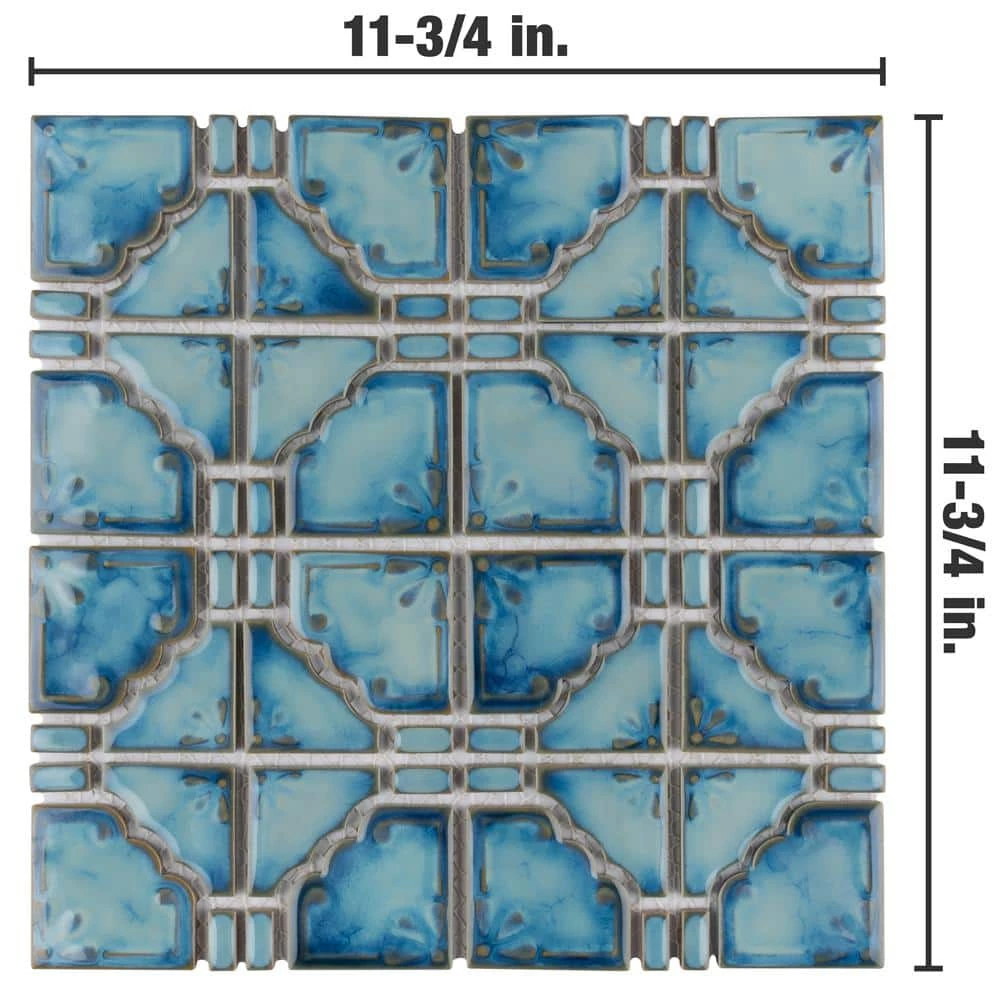 The Merola Tile Moonbeam Diva Blue 12 in. x 12 in. Porcelain Mosaic Tile features a unique mosaic composition as well as a beautiful multi-tonal glaze. With a glossy finish in multiple tones of blue, this tile is suitable for any wall or backsplash installation, or light-traffic residential floors. Use it in its natural format as a field tile, or cut it into strips or square decor pieces to accent other tiles.