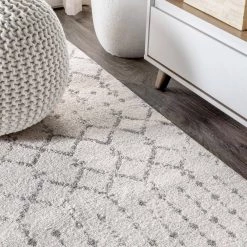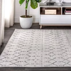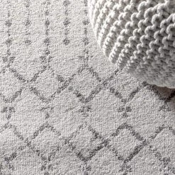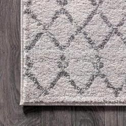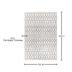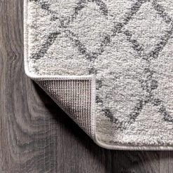 In shades of gray and ivory, this Moroccan trellis is Inspired by timeless vintage designs and crafted with the softest polypropylene available. Originating with the Berber tribes of North Africa, this beautiful linear pattern is made modern in a deep cream yarn power loomed for durability. The simple geometric stripes, triangle and diamond motifs will give a fresh look to any room.