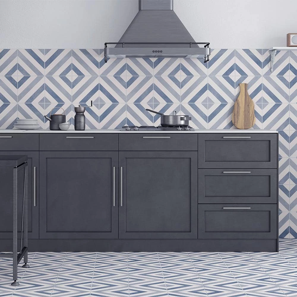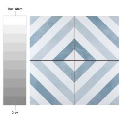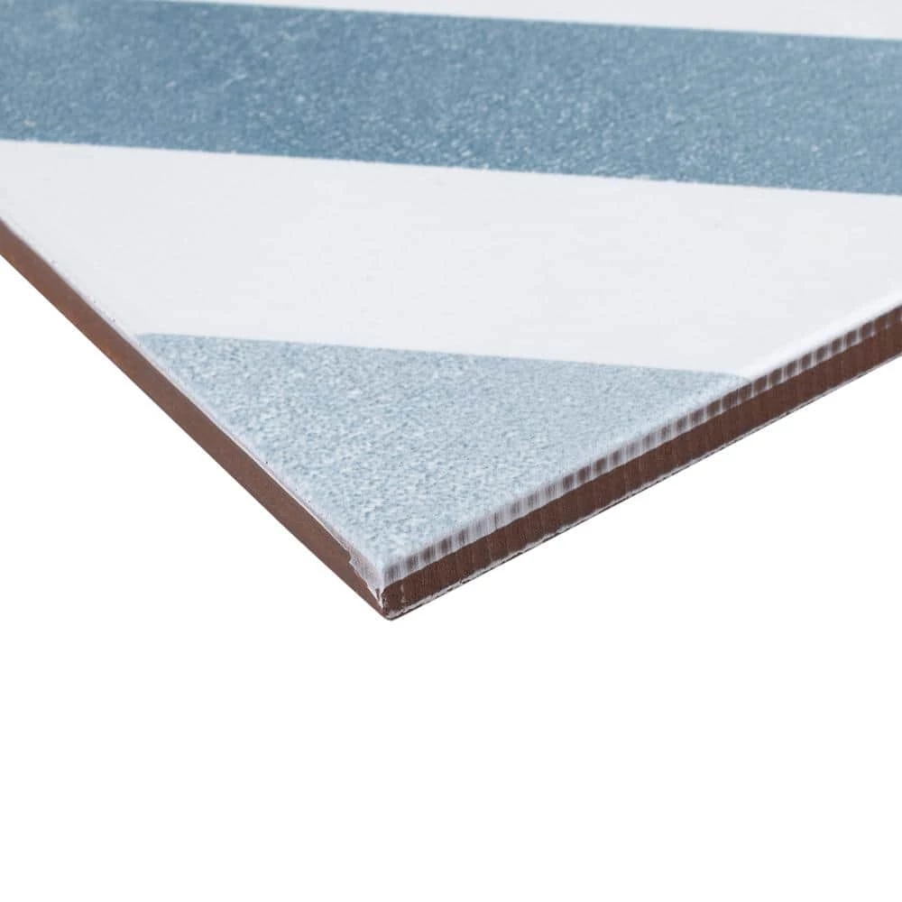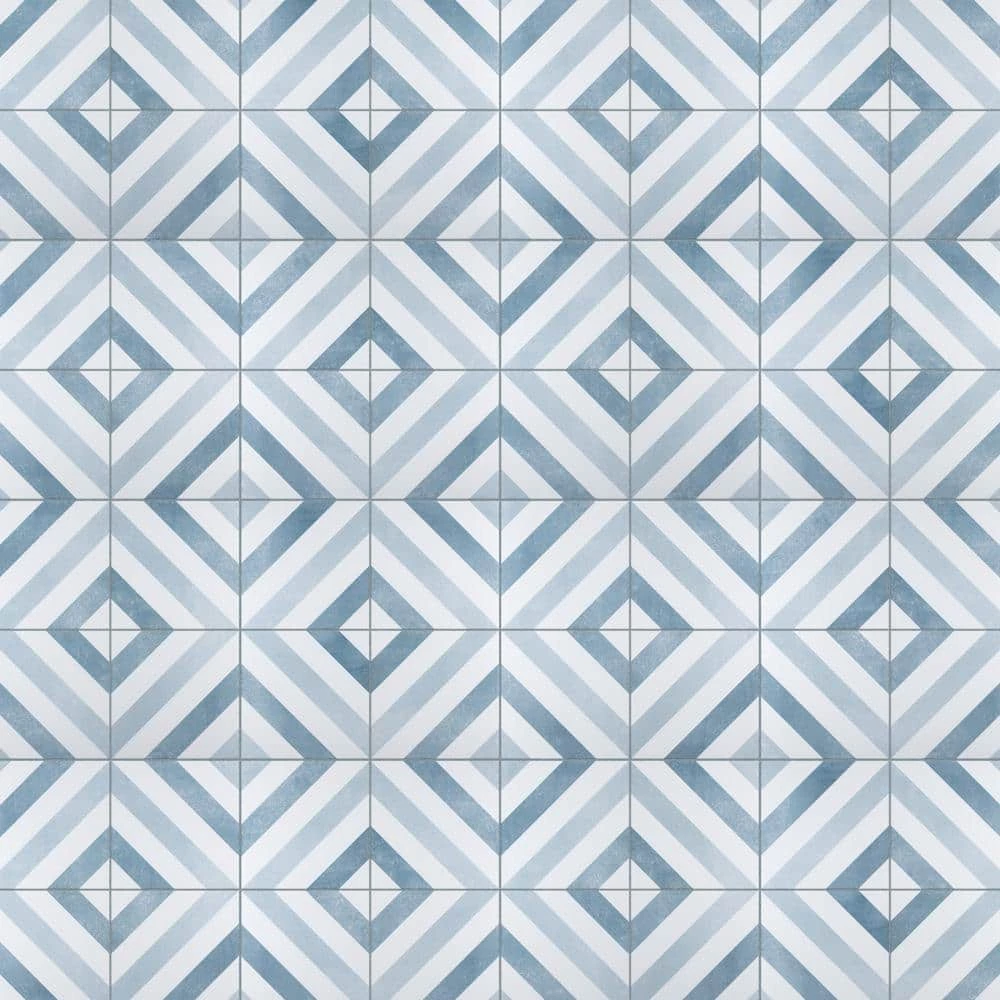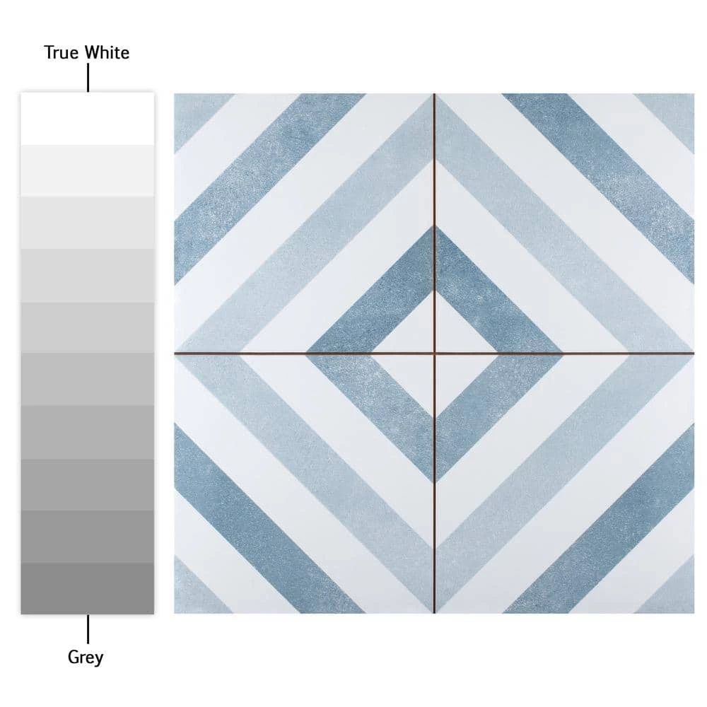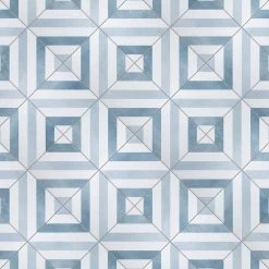Our Merola Tile Opticks Encaustic 17-5/8 in. x 17-5/8 in. Ceramic Floor and Wall Tile offers an encaustic-inspired look. The low-sheen glaze features faded, bold geometric patterns in hues of light blue. This tile consists of a union of slanted lines that converge at the center to create an alluring diamond pattern. Use this durable tile as a lively accent for a variety of indoor floor and wall installations, including kitchens, bathrooms and entryways. Save time and labor spent arranging smaller square tiles and instead install these durable ceramic slabs, which have 4 squares separated by scored grout lines. Tile is the better choice for your space. This tile is made from natural ingredients, making it a healthy choice as it is free from allergens, VOCs, formaldehyde and PVC.
