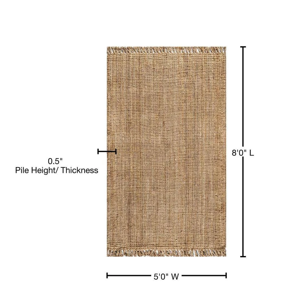 Natural jute fiber and a chunky texture make this handwoven rug a great addition to your home. The solid natural jute color works almost anywhere, in both modern or traditional rooms. Fringed ends add even more texture. This rug is reversible for longer wear.