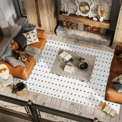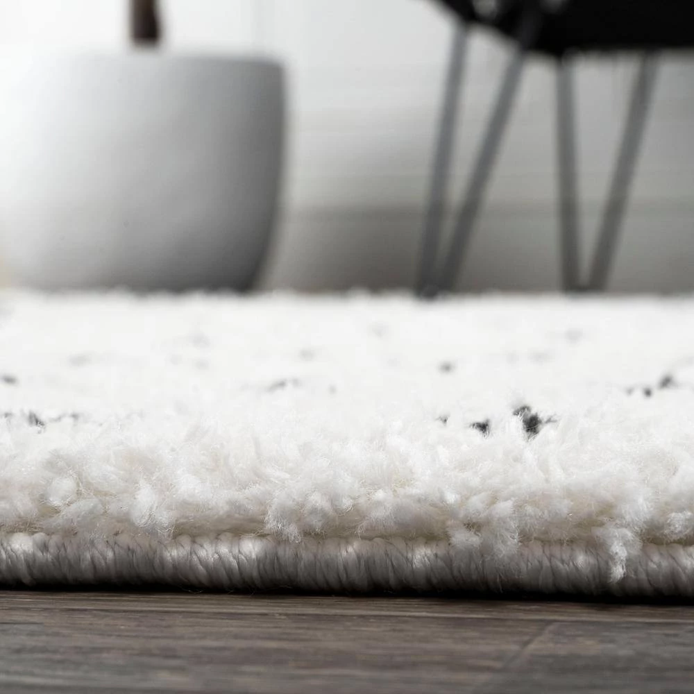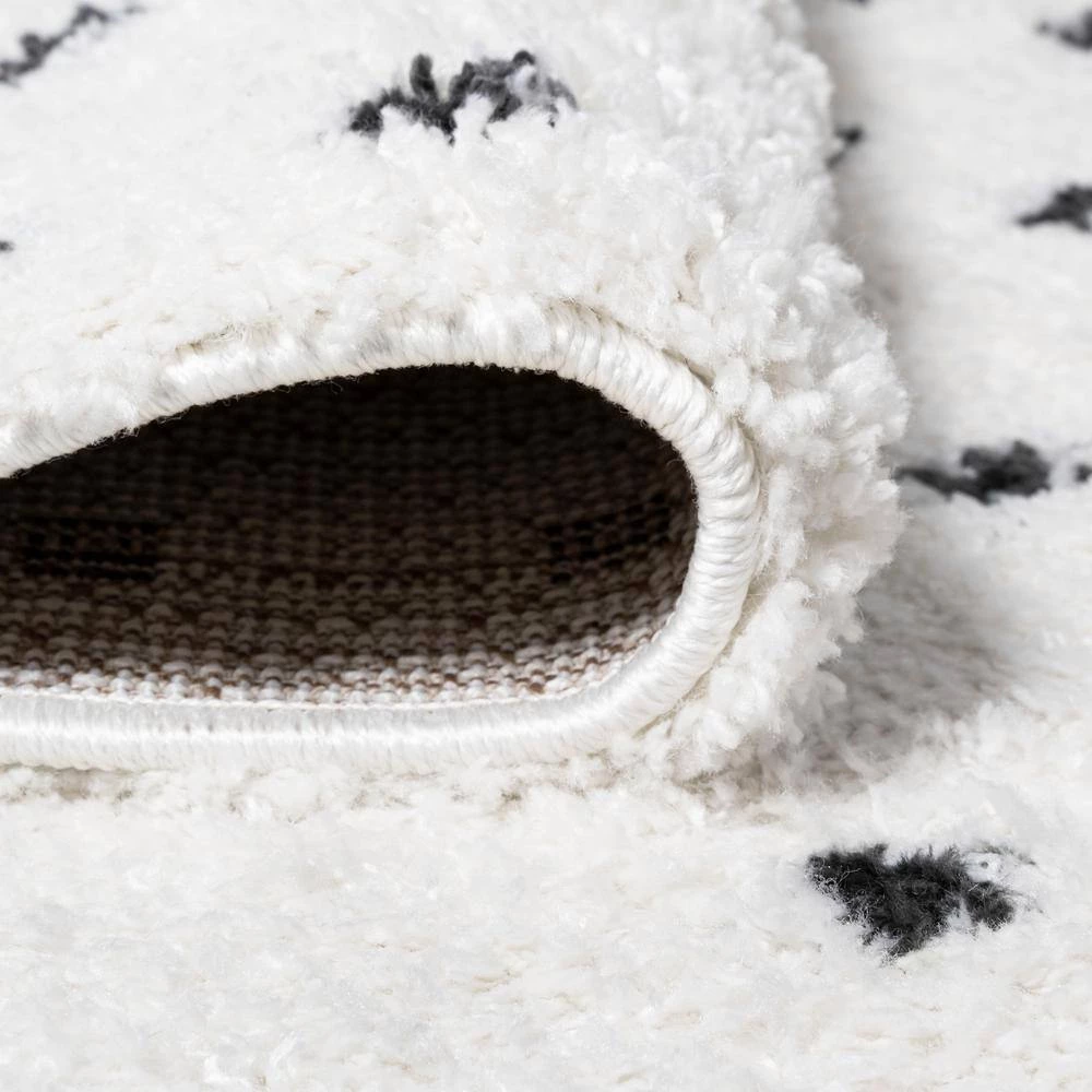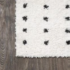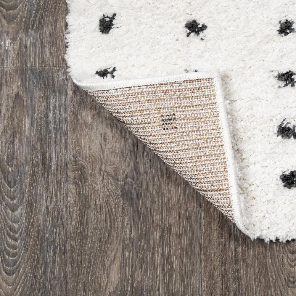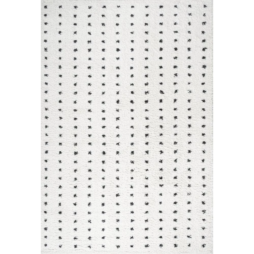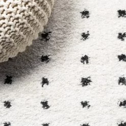 Inspired by mid-century rugs, our geometric dot rug has a soft, low shag pile. The all-over pattern is woven in black on an ivory background. Add some graphic punch to your living room, bedroom, or reading nook with this easy-care rug.