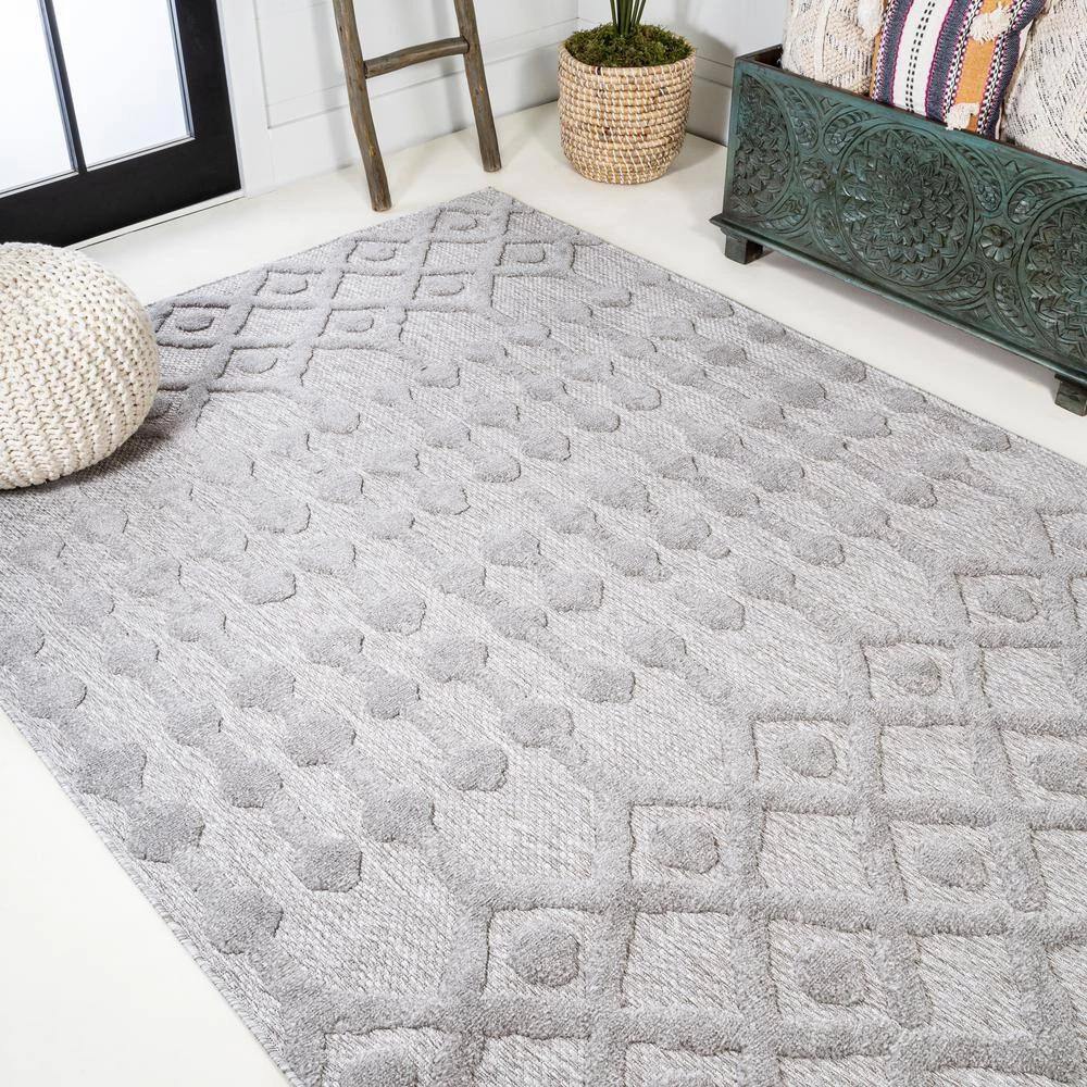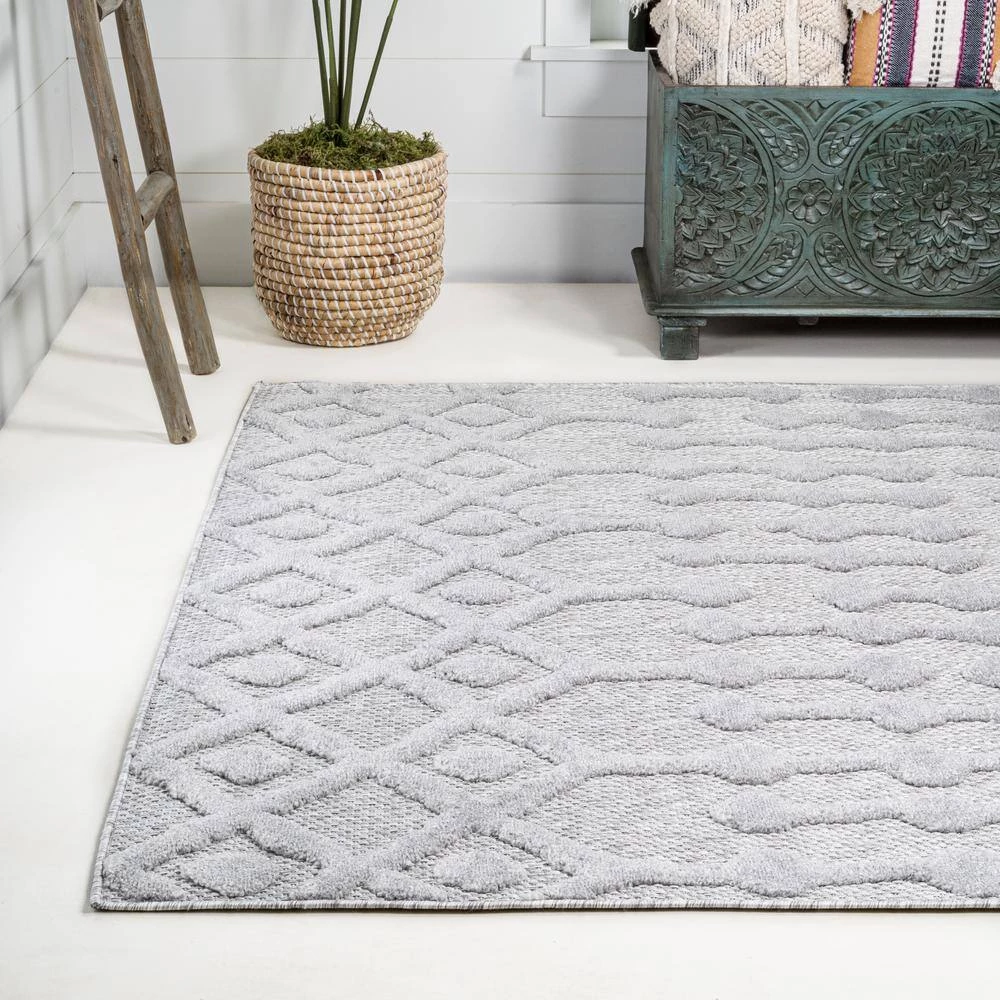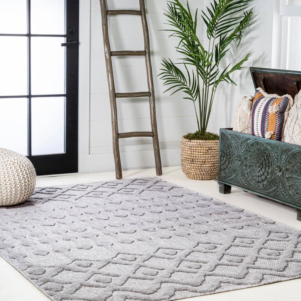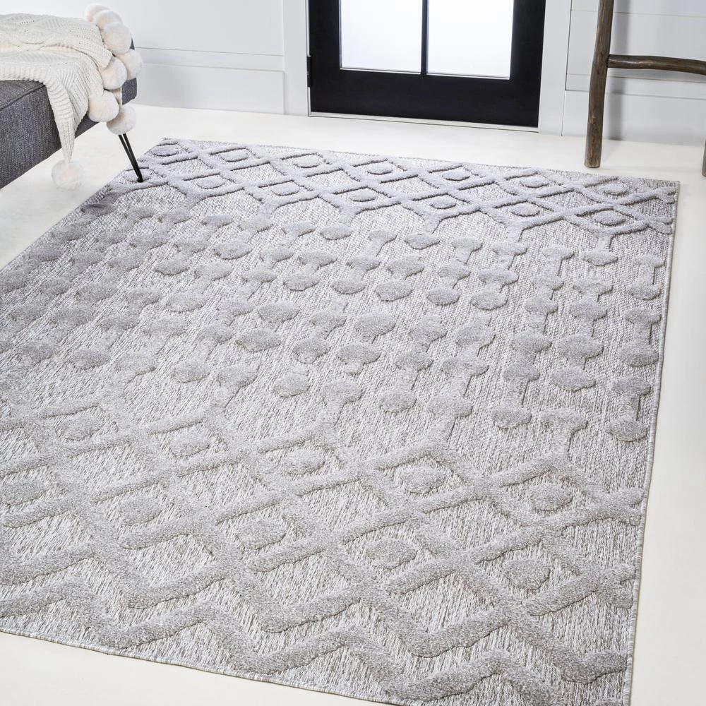 Inspired by traditional Mediterranean tile floors, this neutral indoor/outdoor rug adds subtle, elegant pattern to your porch, patio or sunroom. Mingled gray threads give the geometric pattern a vintage feel that’s perfect for an entry, kitchen, hallway, living room or bedroom. The pet-friendly and kid-proof low pile design makes it easy to clean, and perfect for the modern beach house.
