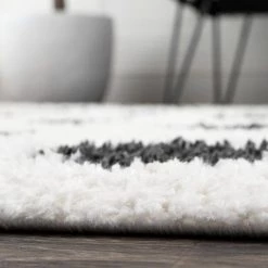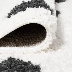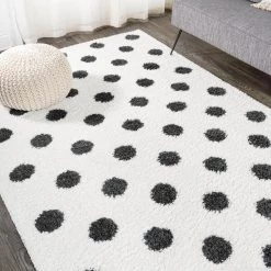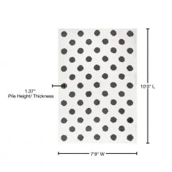 Inspired by mid-century rugs, our polka dot rug has a soft, low shag pile. The all-over pattern is woven in black on an ivory background. Add some graphic punch to your living room, bedroom, or reading nook with this easy-care rug.