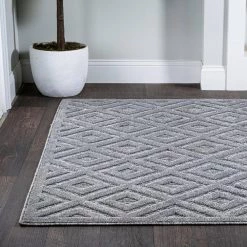 Inspired by traditional Mediterranean tile floors, this neutral indoor/outdoor rug adds subtle, elegant pattern to your porch, patio or sunroom. Mingled gray threads give the geometric pattern a vintage feel that’s perfect for an entry, kitchen, hallway, living room or bedroom. The pet-friendly and kid-proof low pile design makes it easy to clean, and perfect for the modern beach house.