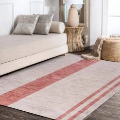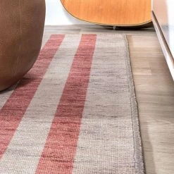 Our wide-spaced stripe rug adds modern style to your mid-century bungalow, beach cottage or farmhouse. This durable, machine-washable rug features distressed stripes in a 2-tone design. Add graphic punch to your living room, dining room, bedroom, or porch with this easy-care, family-friendly rug.