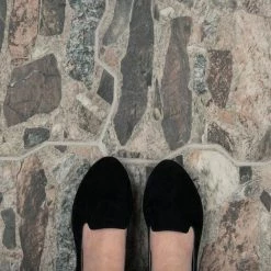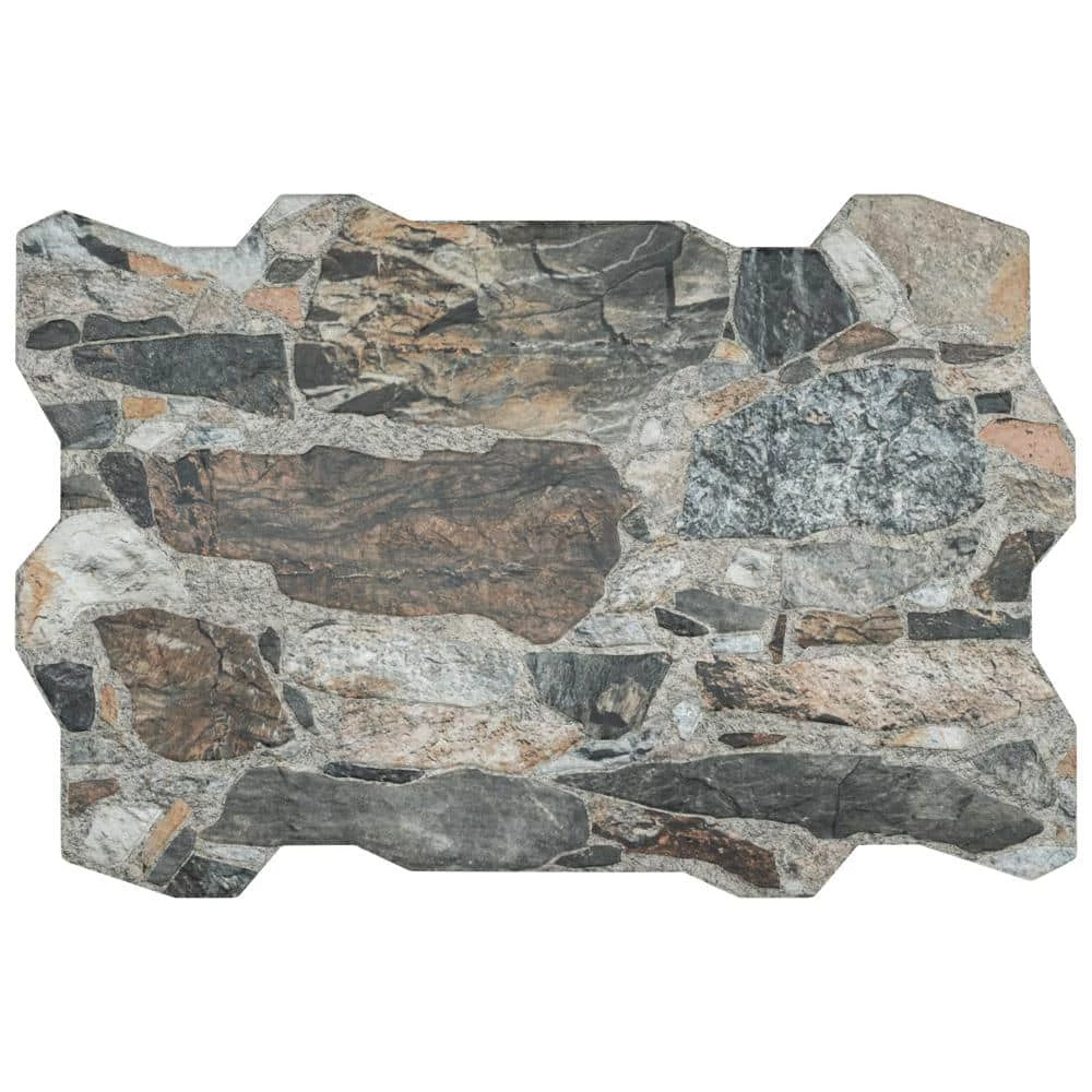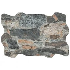 The Merola Tile Rambla Mica Porcelain Floor and Wall Tile is a new take on a stone-look tile that combines the rustic look of natural stone with a classic porcelain material. Its unique shape creates a more natural room look, with a grout line that blends seamlessly. This tile resembles natural stone with shades of beige, taupe, brown, terra cotta, black and gray that varies throughout and between pieces. Use this interlocking tile in indoor or outdoor locations that could use a natural touch.