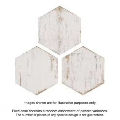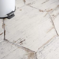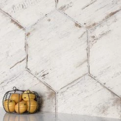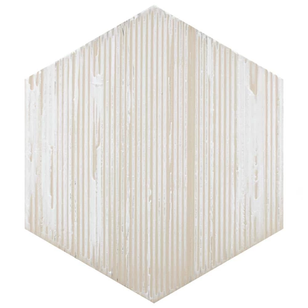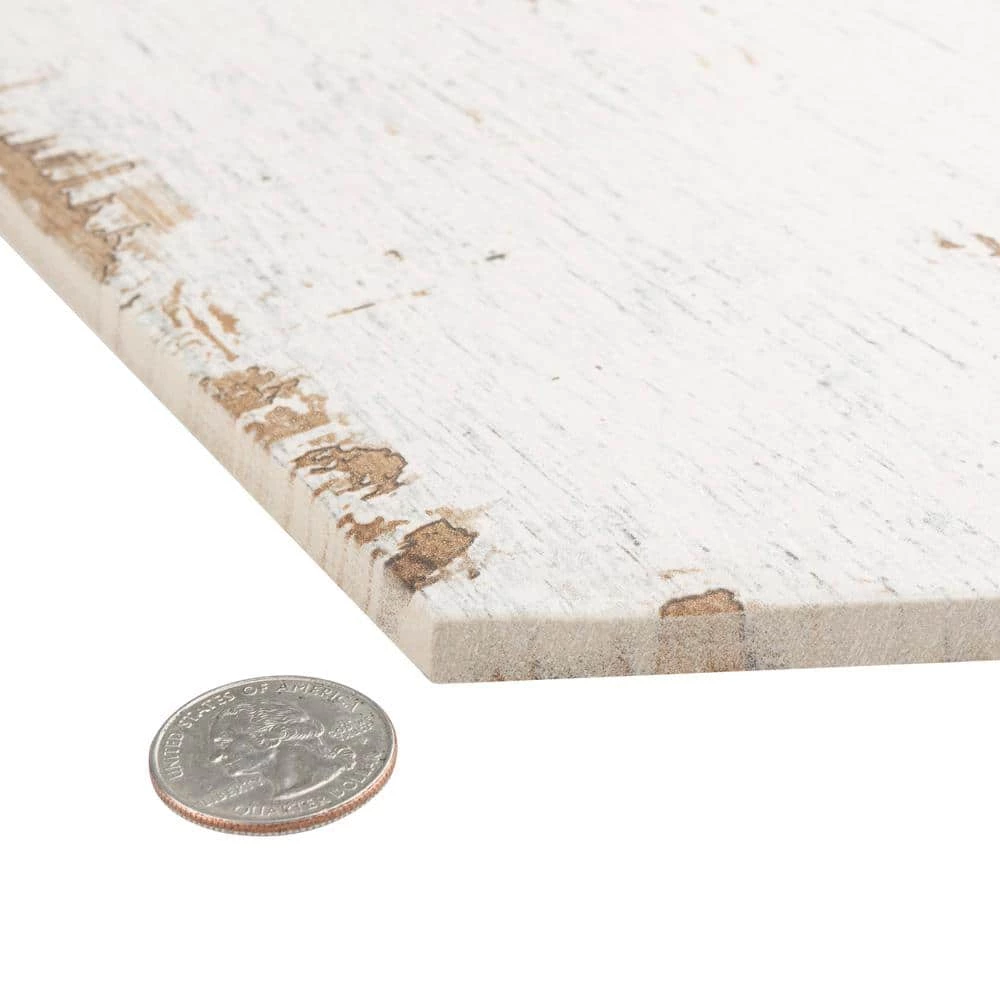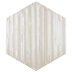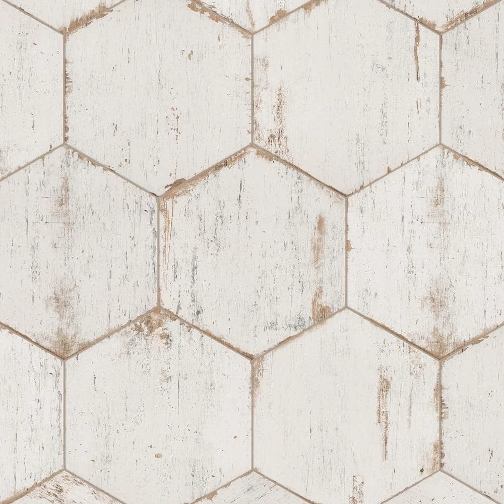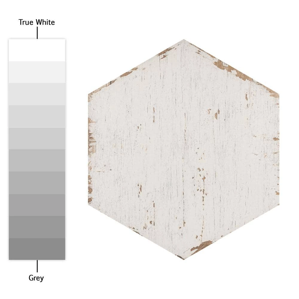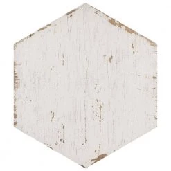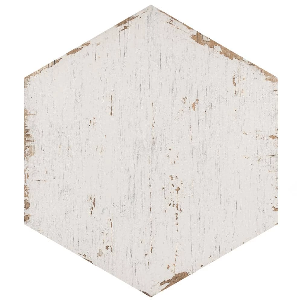 Enjoy the luxurious look of wood tiles at an affordable price with the Merola Tile Retro Hex Blanc 14-1/8 in. x 16-1/4 in. Porcelain Floor and Wall Tile. Crafted in Spain, the white glaze features grey-accented grain, with subtle bumps and grooves in the tile that give it the texture of real wood. It has 12 different print variations for a one-of-a-kind look achieved through the partially handmade process. Abrasion-and-frost resistant, it adds warmth and charm to indoor and outdoor locations, including walls, floors, and patios.
