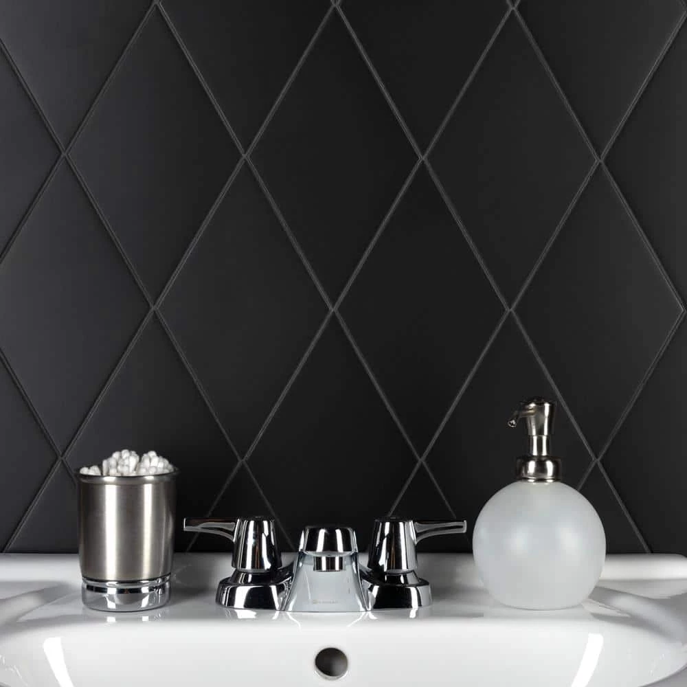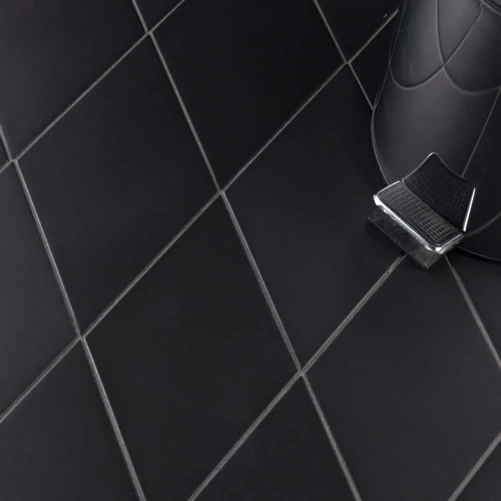 Bring a modern, geometric look to your home with the Rhombus Smooth Black 5-1/2 in. x 9-1/2 in. Porcelain Floor and Wall Tile. This diamond-shaped tile features a medium sheen black glaze and smooth, flat surface that offers a contemporary look for any installation. The unique shape of these tiles allows you to create endless layouts and designs. This slip resistant tile is great for most residential floors, including kitchens, showers and entryways. Look at the different color options in the series that coordinate to add definition and design to your living space.