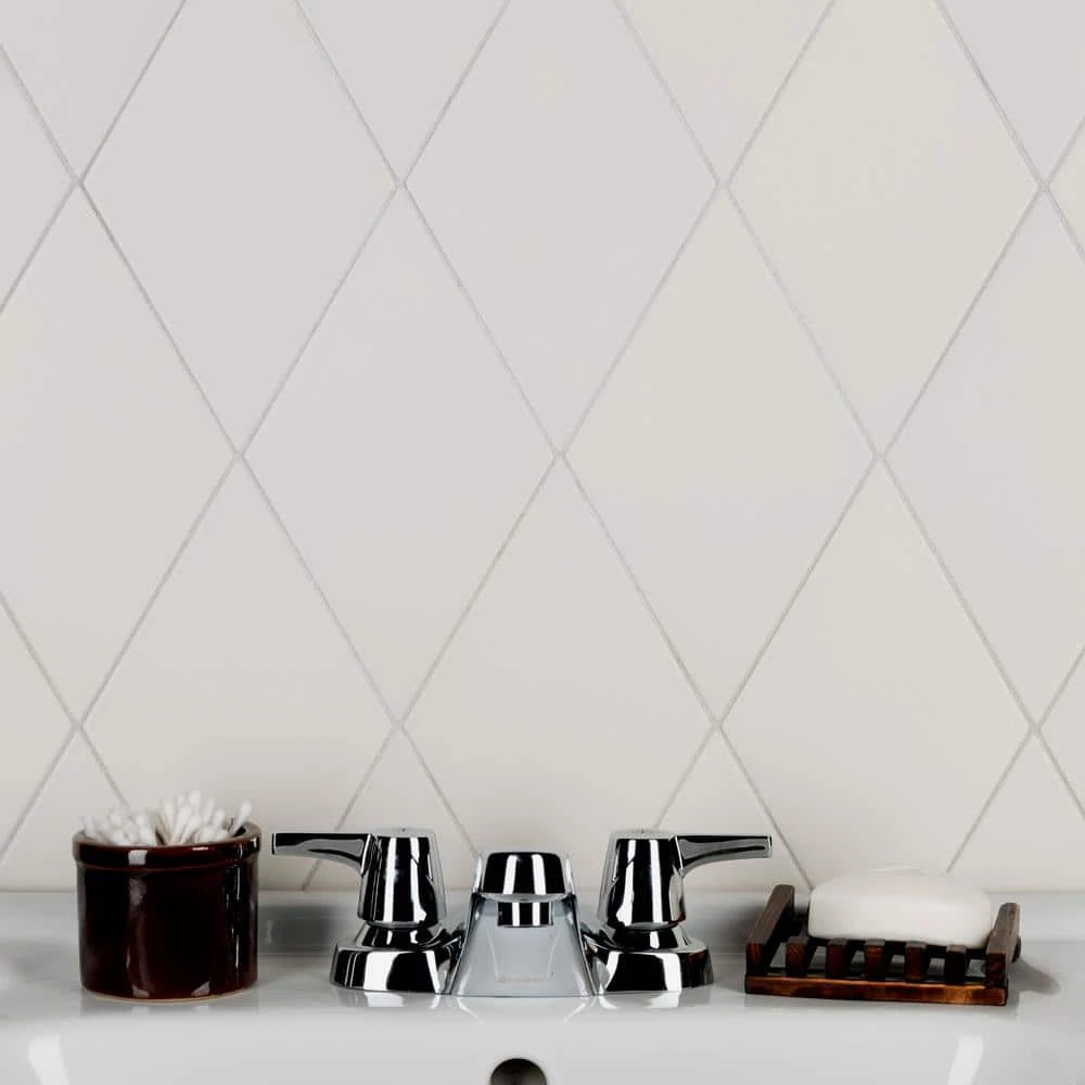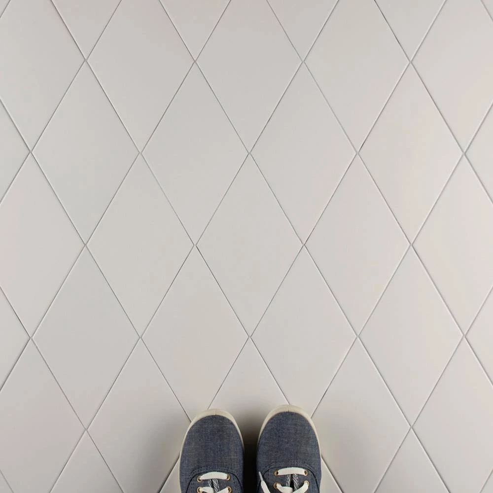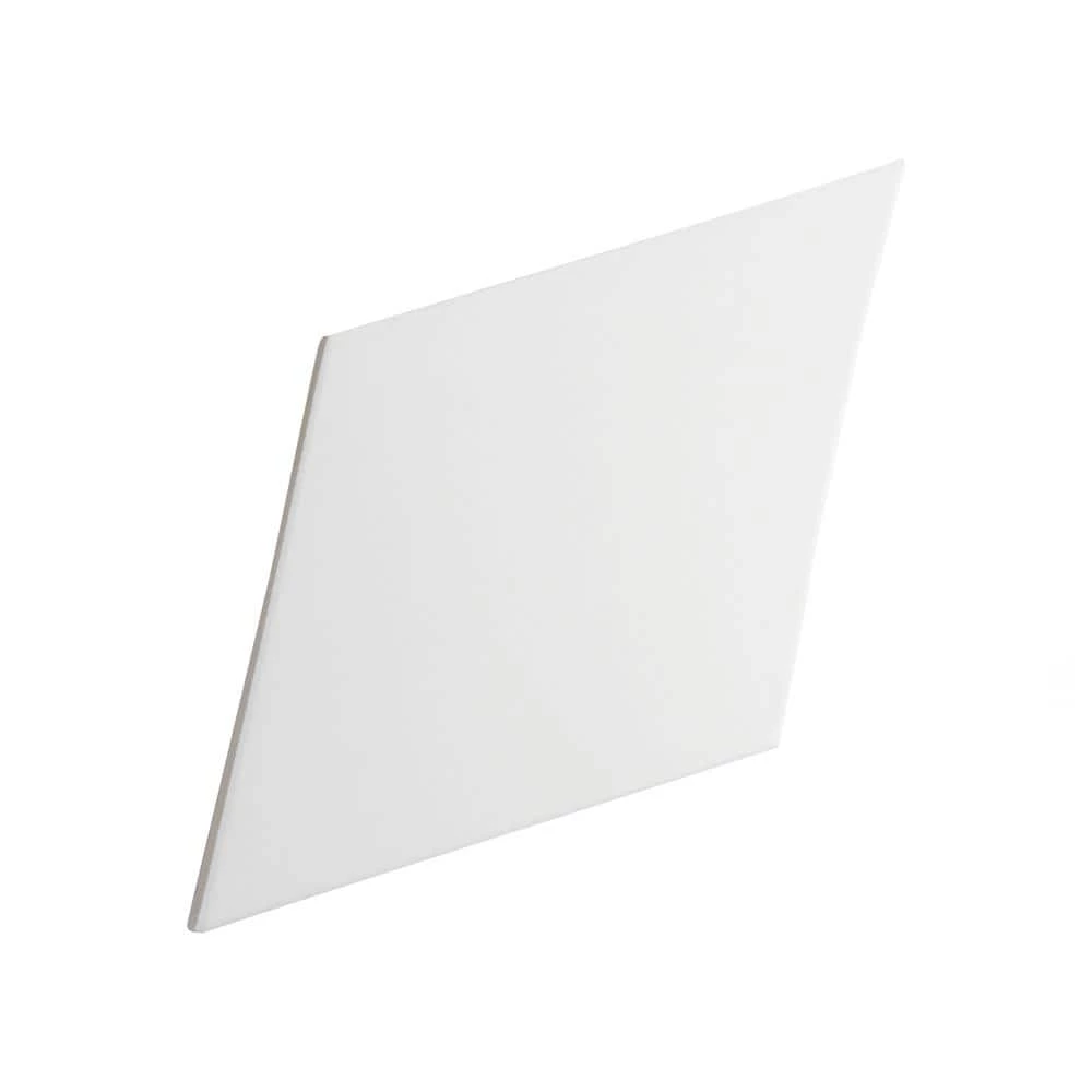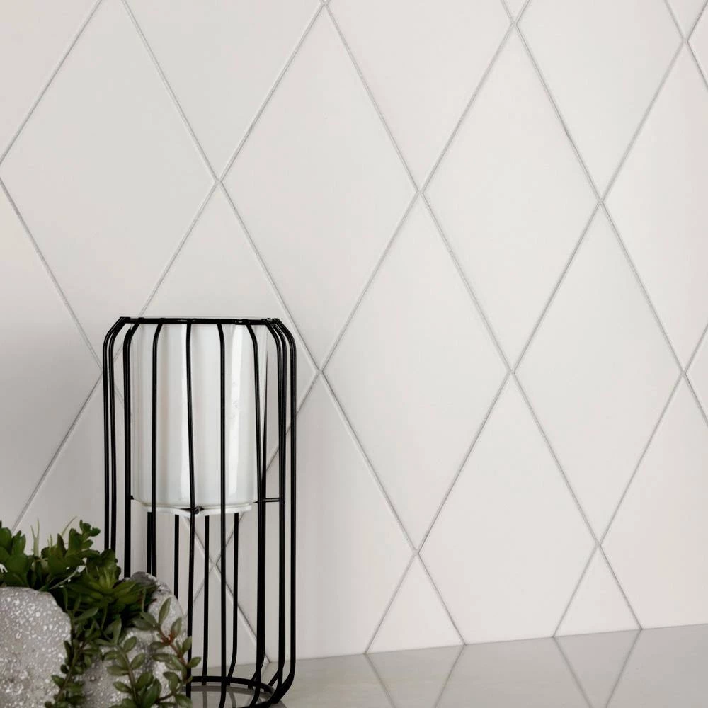 Bring a modern, geometric look to your home with the Rhombus Smooth White 5-1/2 in. x 9-1/2 in. Porcelain Floor and Wall Tile. This diamond-shaped tile features a medium sheen cotton white glaze and smooth, flat surface that offers a contemporary look for any installation. The unique shape of these tiles allows you to create endless layouts and designs. This slip resistant tile is great for most residential floors, including kitchens, showers and entryways. Look at the different color options in the series that coordinate to add definition and design to your living space.