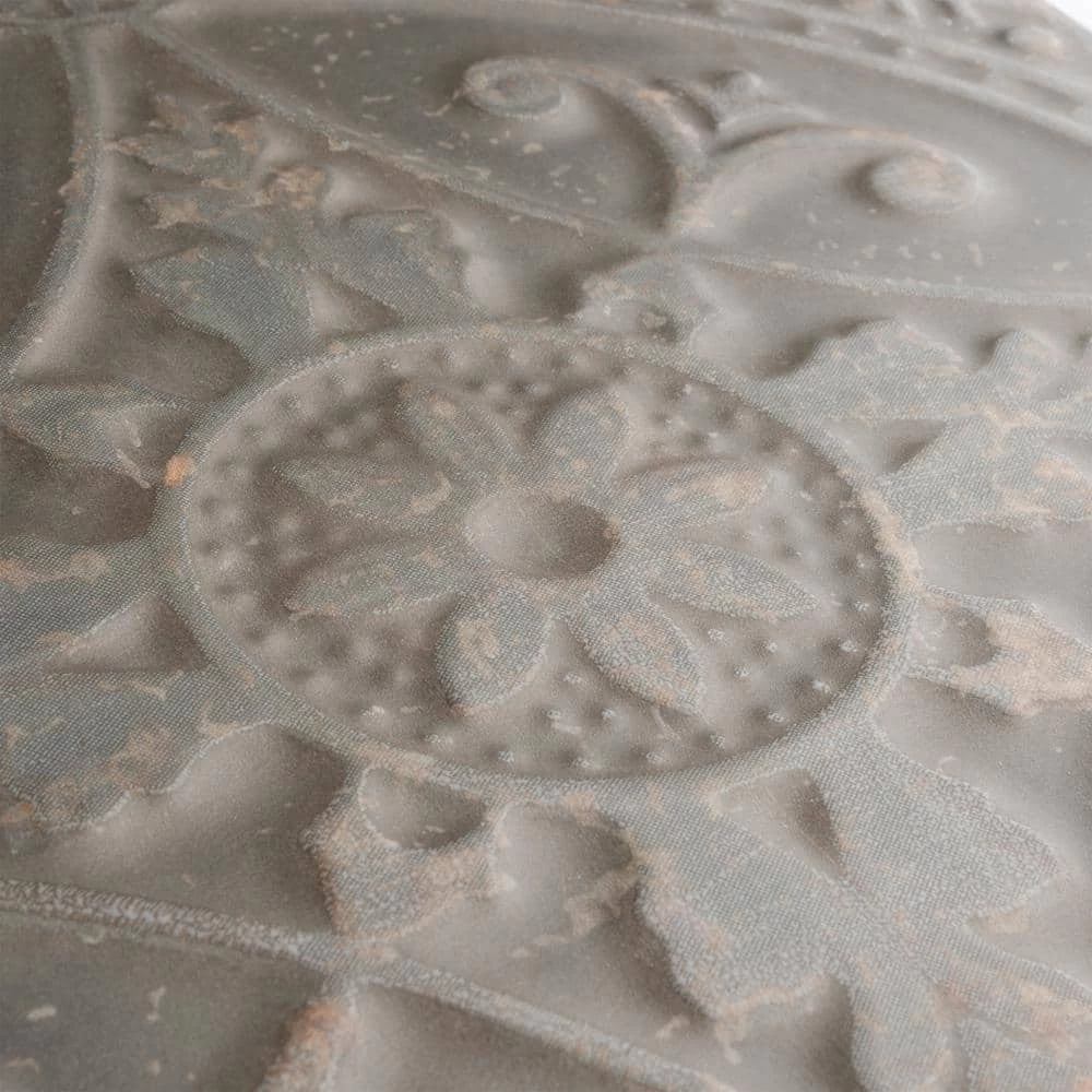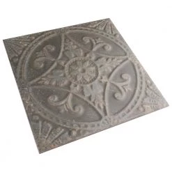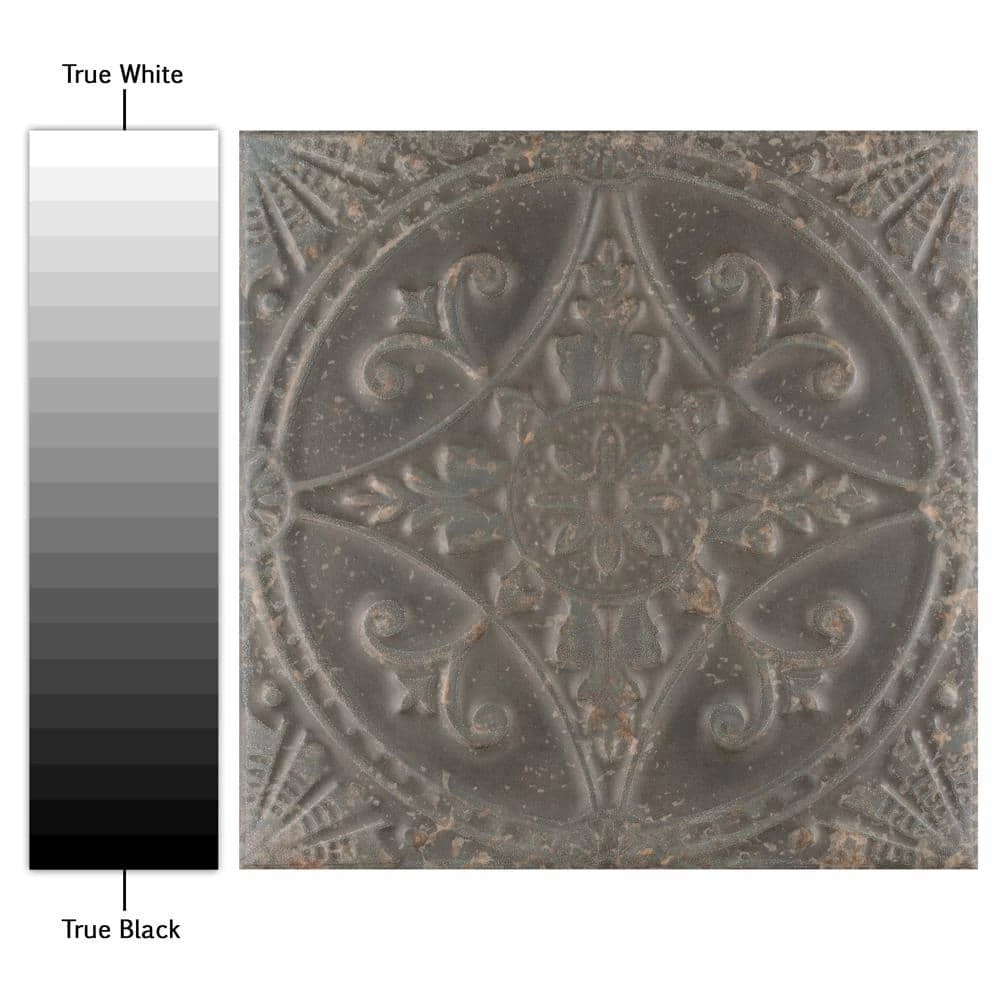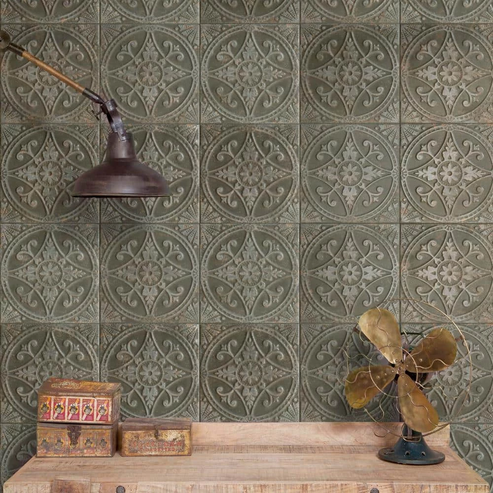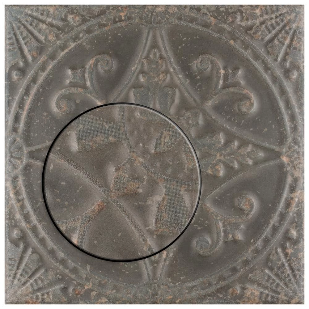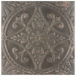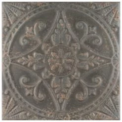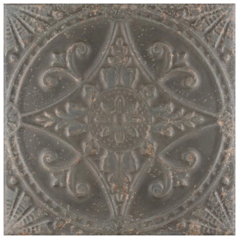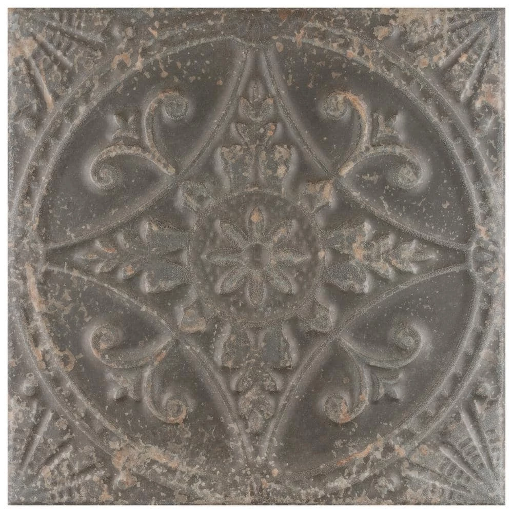 Amplify your decor with the Merola Tile Saja Nero 13 in. x 13 in. ceramic floor and wall tile. Designed by interior architect and furniture designer Francisco Segarra and crafted after a series of oxidized metallic molds, this encaustic-inspired tile is a true reflection of industrial design. Realistic imitations of scuffs and spots that are the marks of well-loved, worn, century-old tile bring rustic charm to your interior for accent walls, backsplashes and more. The convincing marks add an aged appearance to the tiles. Named after the Saja River in Spain, this tile features a black glaze that has a weathered, worn look reminiscent of tin ceiling tiles. The centering raised floral design offers a dimensional, eye-catching look. Ten possible variations are randomly scattered throughout each case. The scored grout lines can be grouted with the color of your choice, or left ungrouted for a rugged finish. Despite its high durability rating, these matte tiles could wear irregularly on a high-traffic floor due to the variation in height.