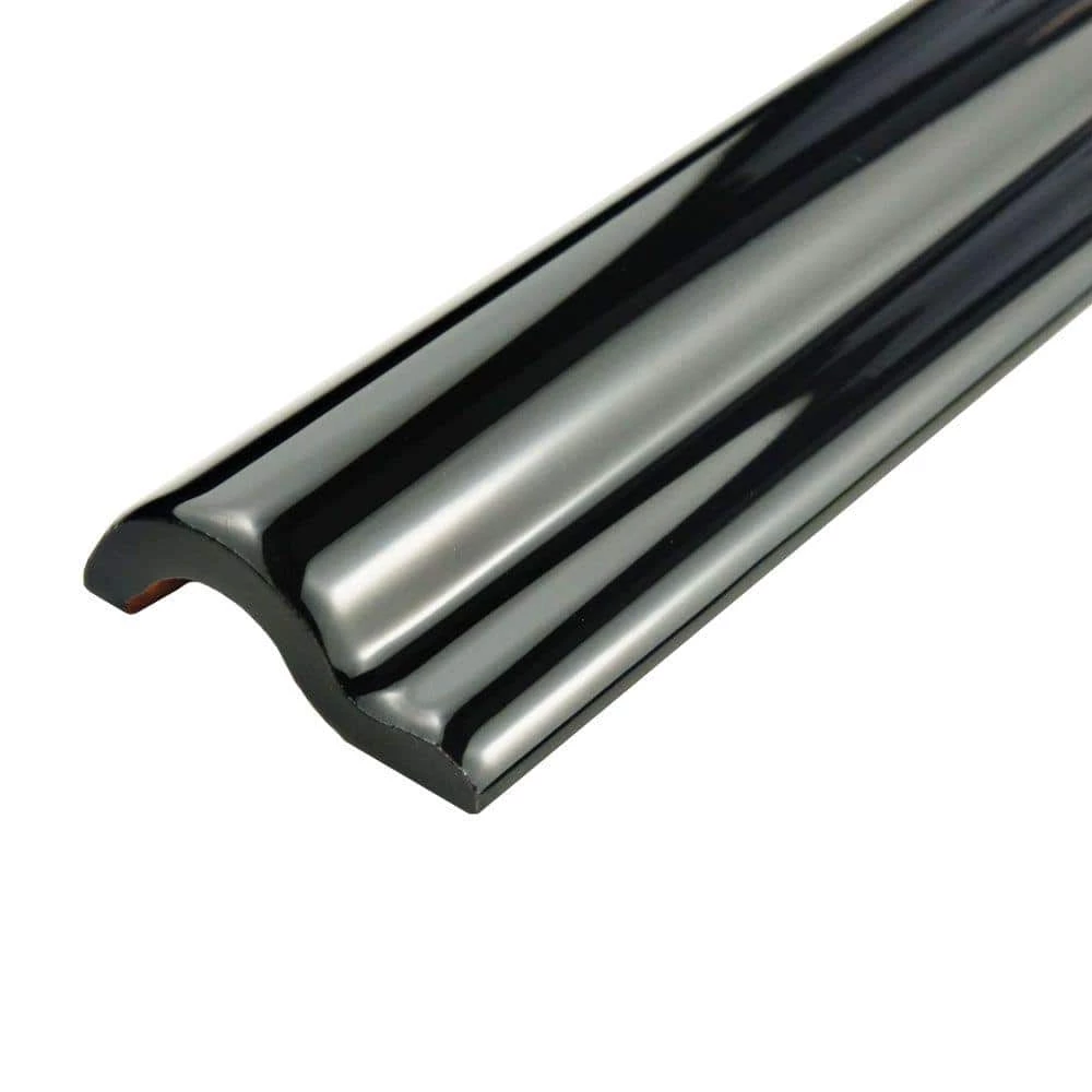 Featuring a simplistic yet sophisticated nature, our Santorini Nero 2 in. x 7-7/8 in. London Chair Rail Ceramic Wall Trim Tile has the ability to elevate spaces through its classic, clean design. With a glossy multi-dimensional surface, this black trim adds sophisticated depth to any space. Meant for using as a finishing edge or for separating 2-parts of a tile installation, this trim is perfect as an accent for the other items in the Santorini Collection. Intended for indoor wall use, this tile is an ideal choice for backsplashes, bathrooms, showers and kitchens. Tile is the better choice for your space. This tile is made from natural ingredients, making it a healthy choice as it is free from allergens, VOCs, formaldehyde and PVC.
