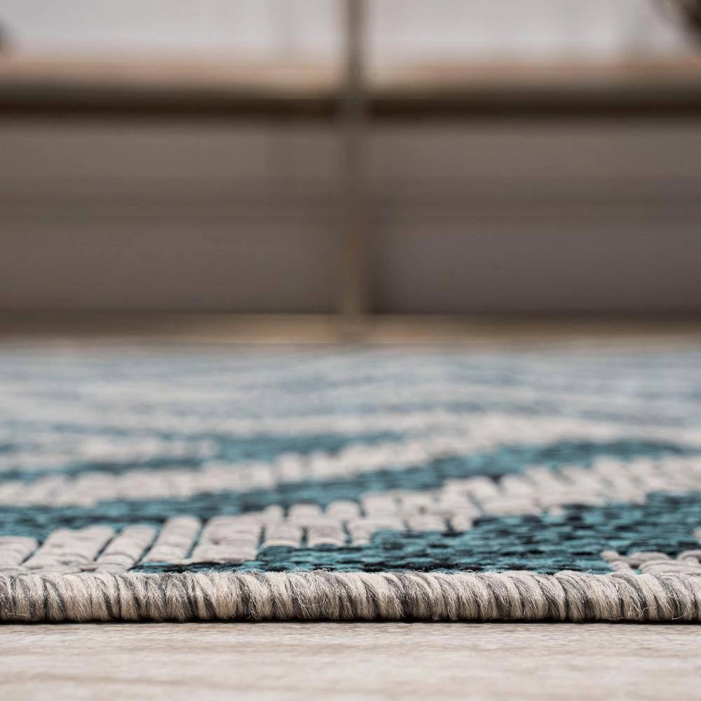 Inspired by antique Mediterranean tile patterns, this indoor-outdoor rug will cheer up a kitchen, living room, bedroom or dining room. The rich Moroccan blue design is an easy maintenance solution for homes with kids and pets. Outdoors, this rug adds a splash of color and Bohemian style to your patio or porch.