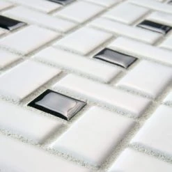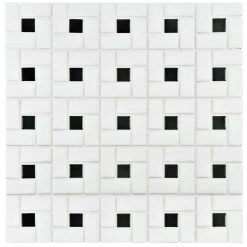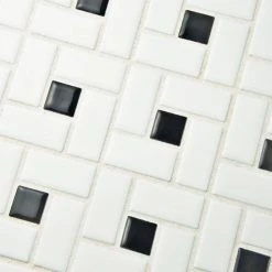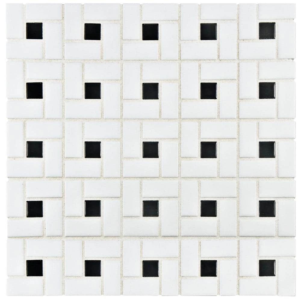 Featuring a classic design that is inspired by subways, the Merola Tile Spiral Black and White 12-1/2 in. x 12-1/2 in. x 6 mm Porcelain Mosaic Tile can be used alone or cut into strips as an accent piece. This tile is great for restoring an older home or recreating Victorian-era style. The product is made of satin white tiles that surround glossy black tiles. It is suitable for heavy-duty commercial and residential applications, including kitchens, foyers, backsplashes and bathrooms.