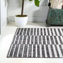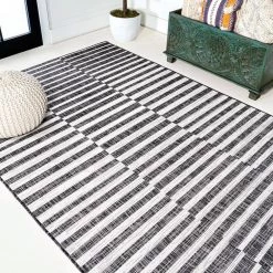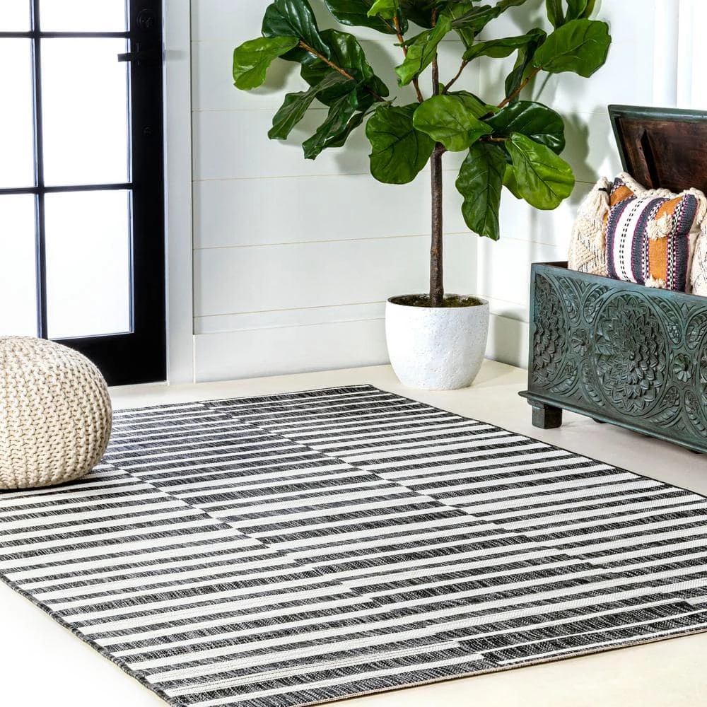 Inspired by Berber rugs, our modern striped rug has a soft, low pile. The offset stripe pattern recalls the tribal rug designs made popular by mid-century design. With its easy-care fibers, this versatile rug is ideal for a living room, dining room, entry or bedroom.