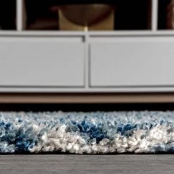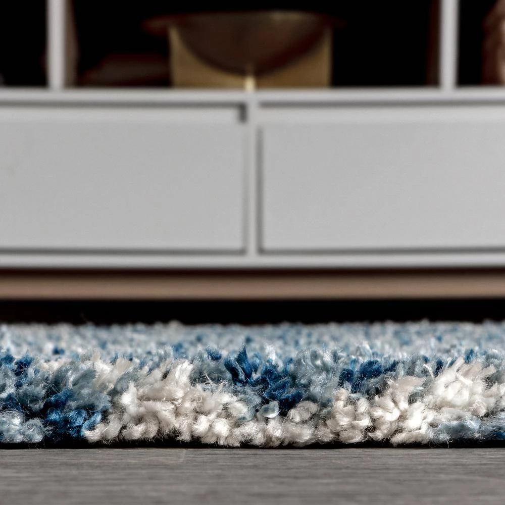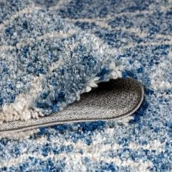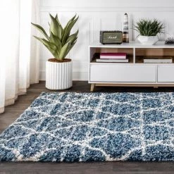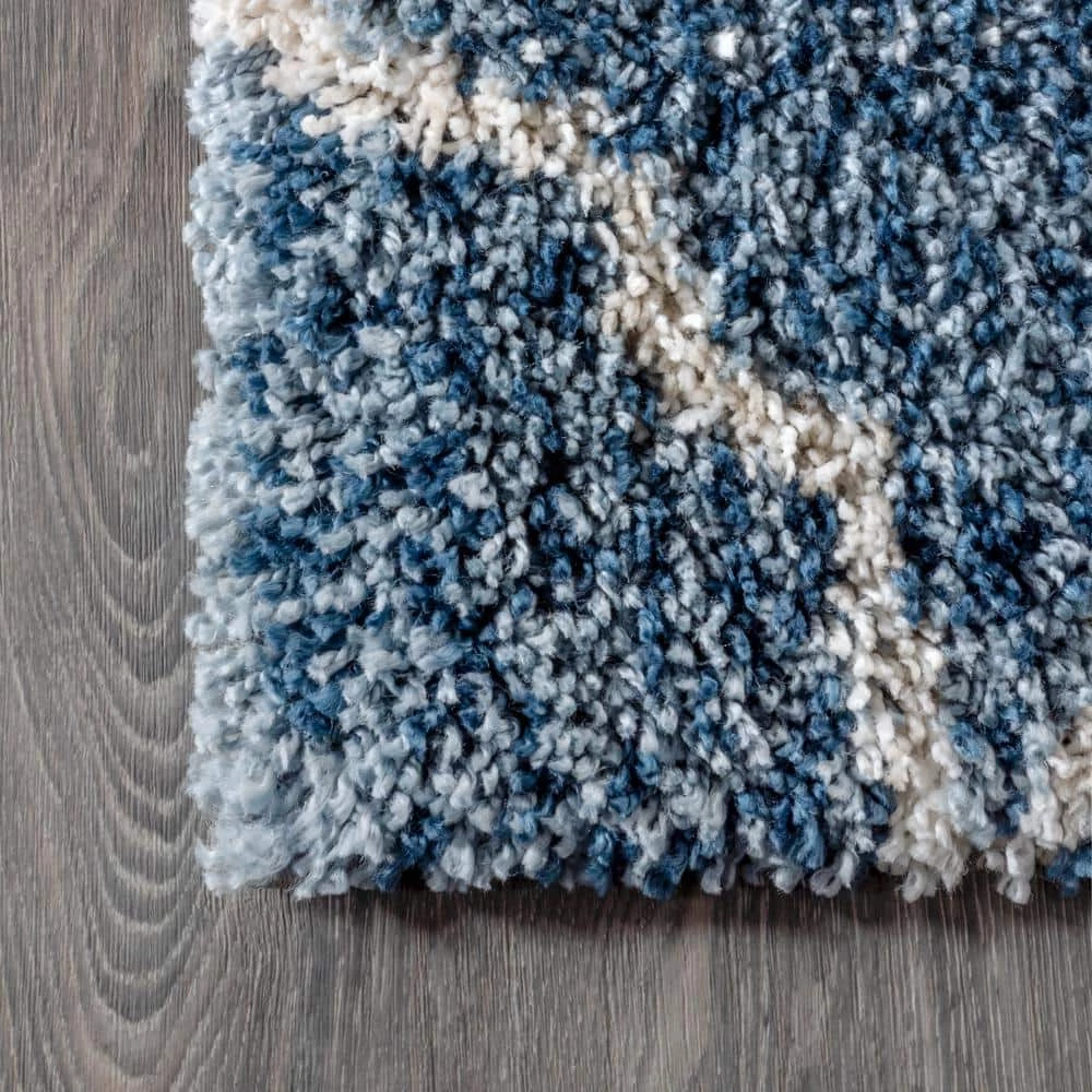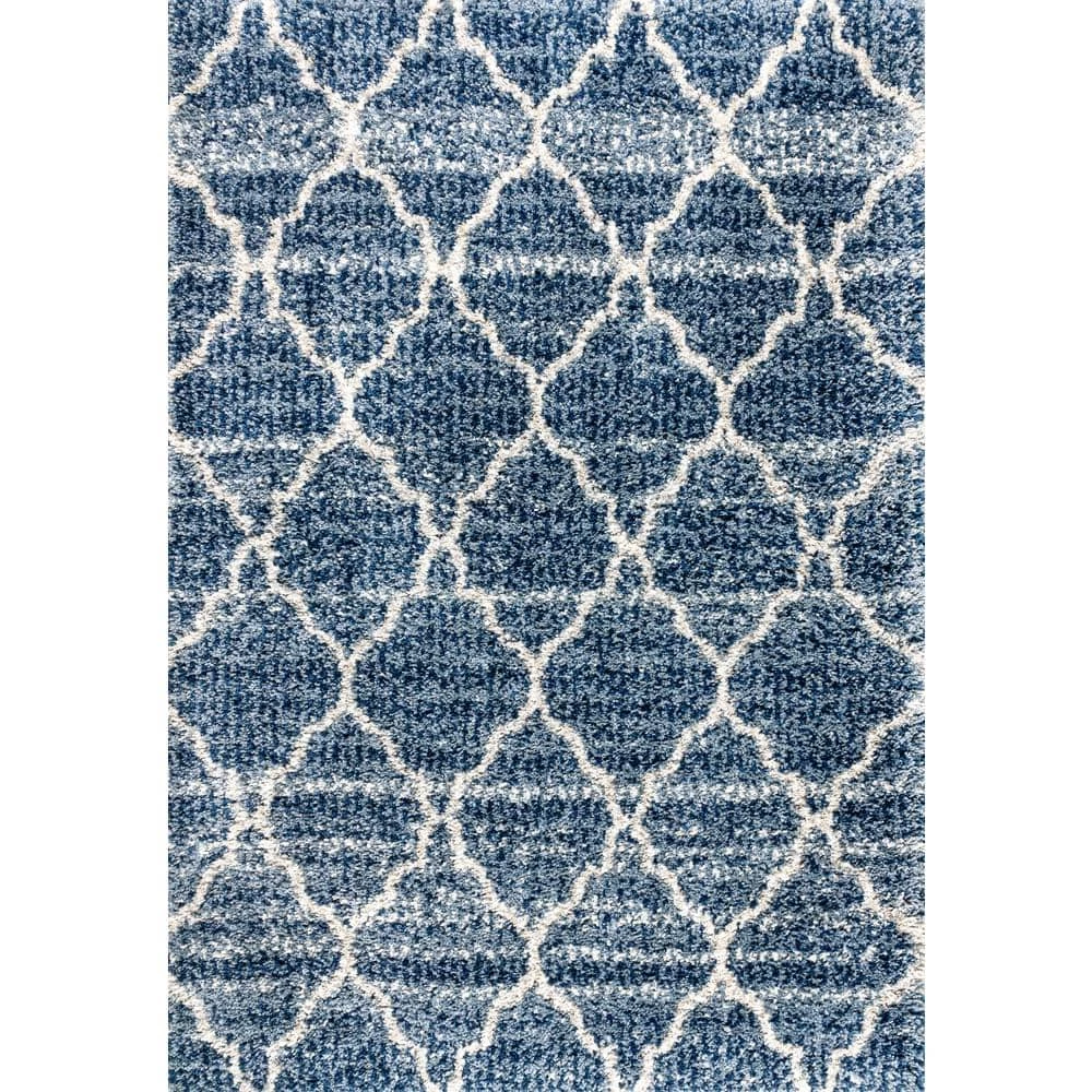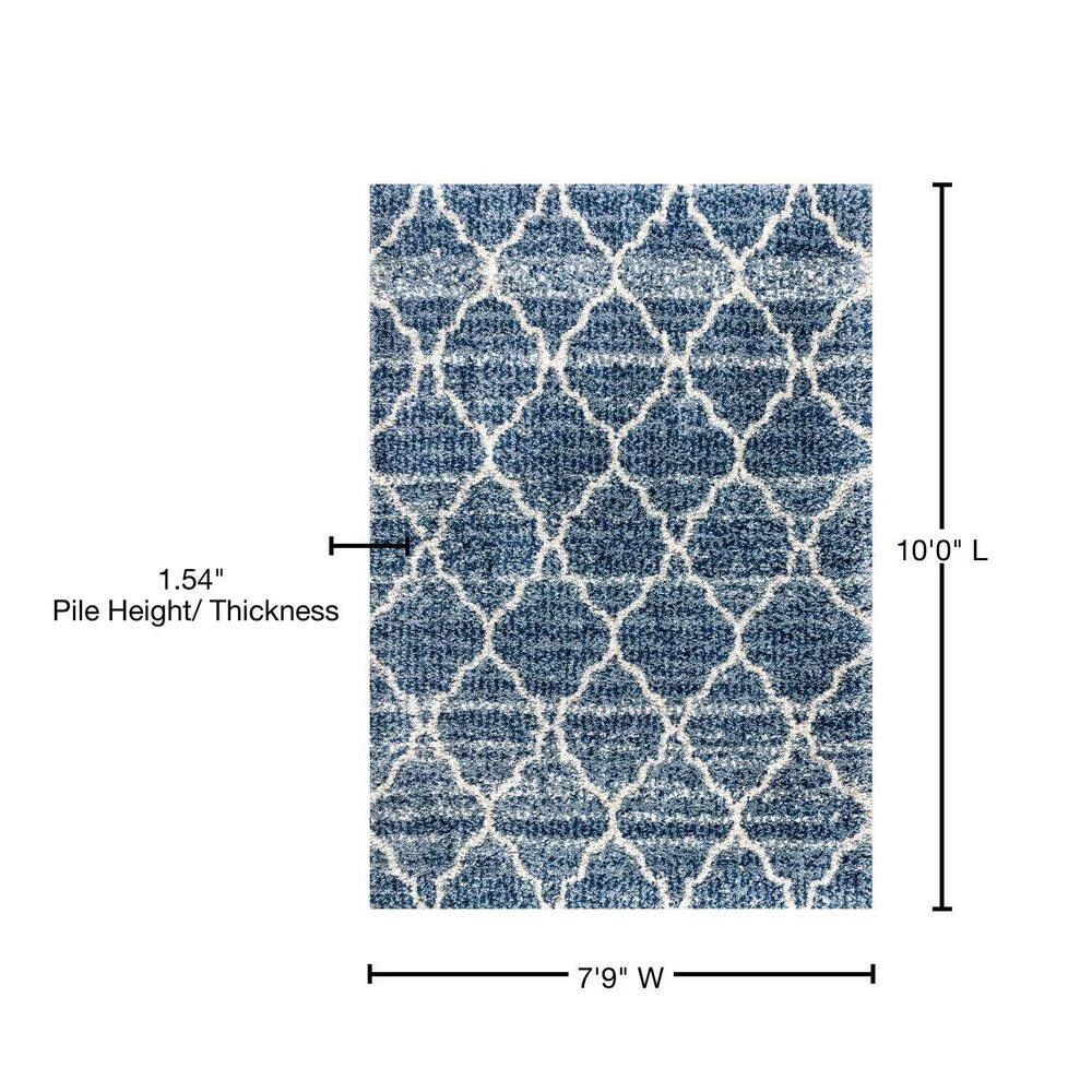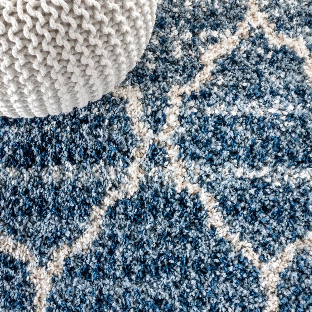 Mingled shades of deep indigo blue give our Susa shag rug a vintage look. The ogee trellis pattern, reminiscent of Moroccan tile designs, is softened by the striated yarns of the background. The soft shag pile is just long enough to sink into – perfect for a living room, bedroom or den.