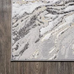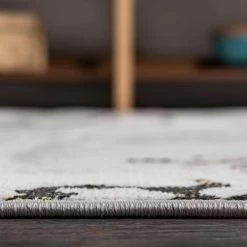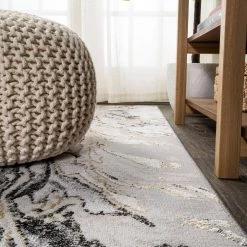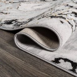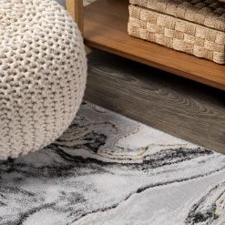 Inspired by the abstract designs of marbled papers, this bold rug has a modern, coastal vibe. Deep charcoal and gray swirl across an ivory background. This unique rug’s overall pattern makes it perfect for homes with kids and pets. It’s the perfect centerpiece for a mid-century modern, contemporary, beach house or minimalist interior.