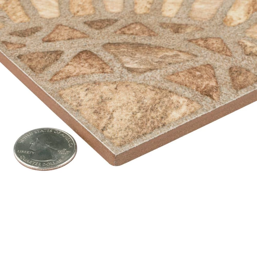 The Merola Tile Terra Beige 17-3/4 in. x 17-3/4 in. Ceramic Floor and Wall Tile features a textured, low sheen finish. This tile captures the look of intricate, individually placed stones on an easy to install ceramic slab. Taupe faux grout lines help to accentuate these ochre, sepia, terra cotta, tan and taupe individual stones. This highly durable non-vitreous tile can be used in high-traffic residential and commercial interior spaces.