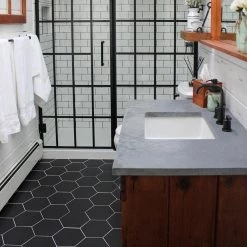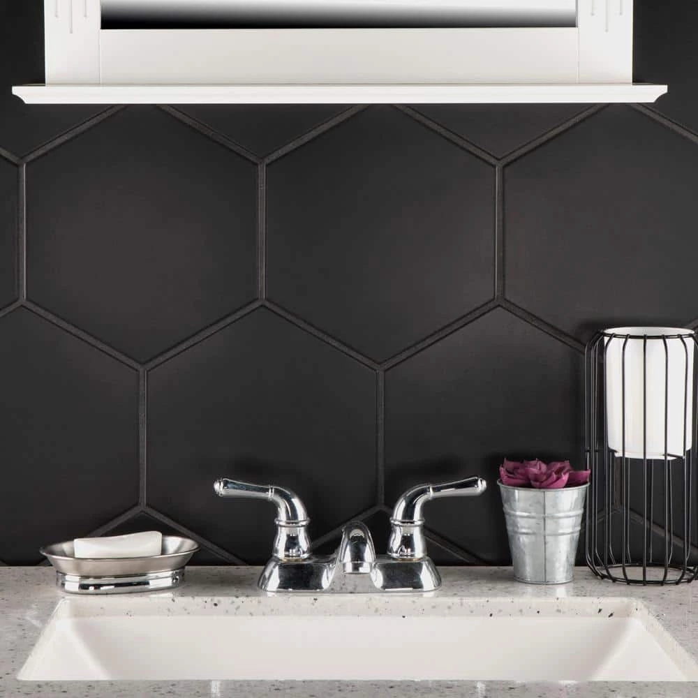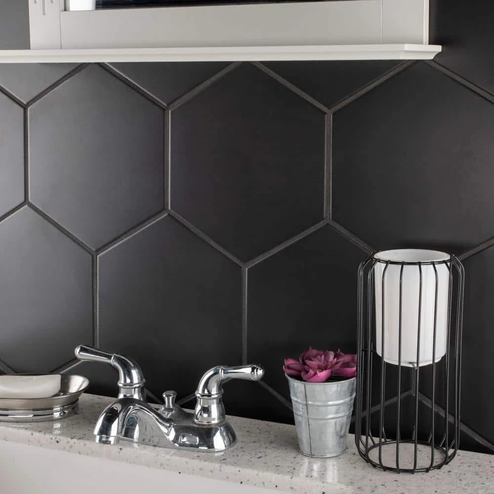 Lending a bold touch of color, our Textile Basic Hex Black 8-5/8 in. x 9-7/8 in. Porcelain Floor and Wall Tile instantly elevates spaces through a refreshing dose of geometric design. The black glaze is uniformly applied to create a striking matte surface that offers eye-catching beauty. Given the versatility of its format, this hexagon tile is unique yet simplistic enough to integrate into any design, ranging from traditional style renovations to modern home projects. Its impervious, frost resistant and durable features make this an ideal tile for residential indoor and outdoor use, including backsplashes, bathrooms, kitchens and patios. This tile is a perfect choice on its own or paired with other products in the Textile Collection. Tile is the better choice for your space. This tile is made from natural ingredients, making it a healthy choice as it is free from allergens, VOCs, formaldehyde and PVC.