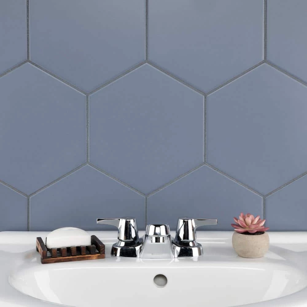 Lending a unique touch of color, our Merola Tile Textile Hex 9-7/8 in. x 8-5/8 in. Ducados Porcelain Floor and Wall Tile instantly elevates spaces through a refreshing dose of vivid geometric design. The pale denim blue glaze is uniformly applied to create a striking matte surface that offers eye-catching beauty. Given the versatility of its format, this hexagon tile is unique yet simplistic enough to integrate into any design, ranging from traditional style renovations to modern home projects. Its impervious, frost resistant and durable features make this an ideal tile for residential indoor and outdoor use, including backsplashes, bathrooms, kitchens and patios. This tile is a perfect choice on its own or paired with other products in the Textile Collection. Tile is the better choice for your space. This tile is made from natural ingredients, making it a healthy choice as it is free from allergens, VOCs, formaldehyde and PVC.